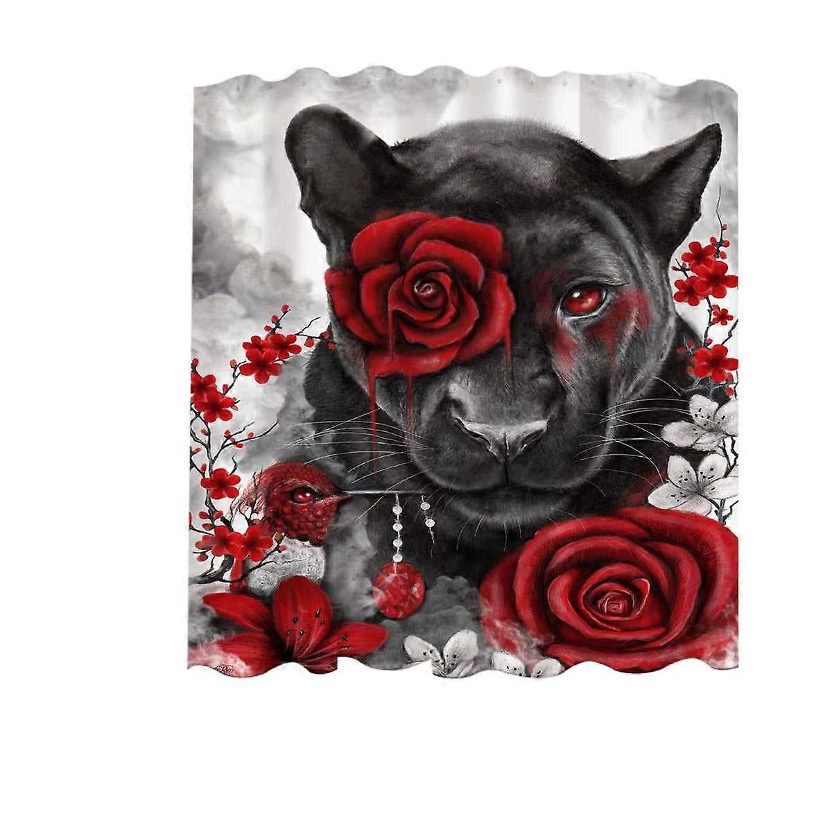 Art Painting Ruby Rose Panther and Hummingbird Shower Curtain