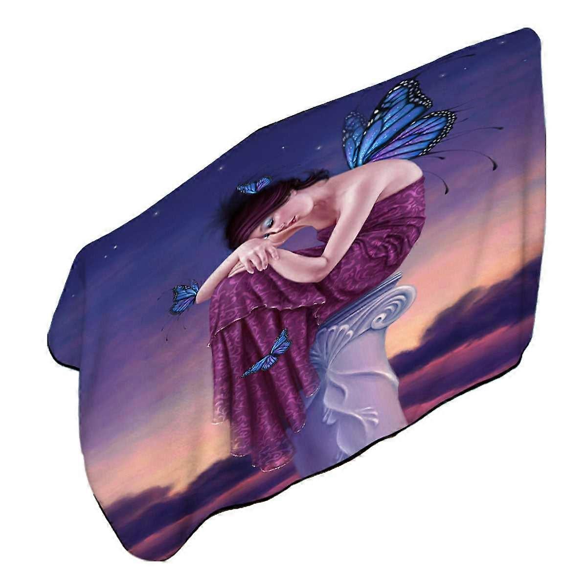 Art Painting Sunset Sleepy Butterfly Girl Microfiber Beach Towel