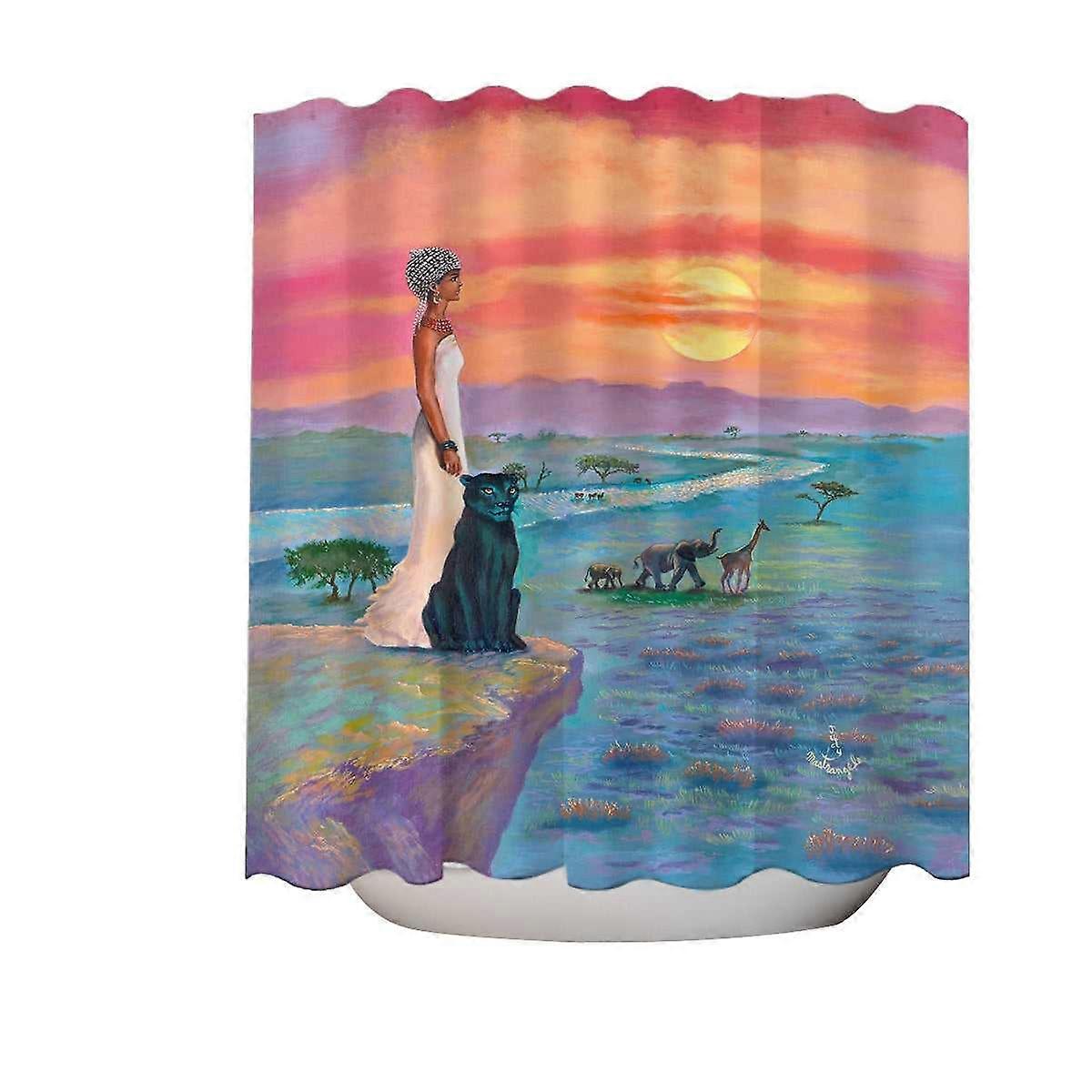 Art Painting the landscape of Africa Animals and African Queen Shower Curtain