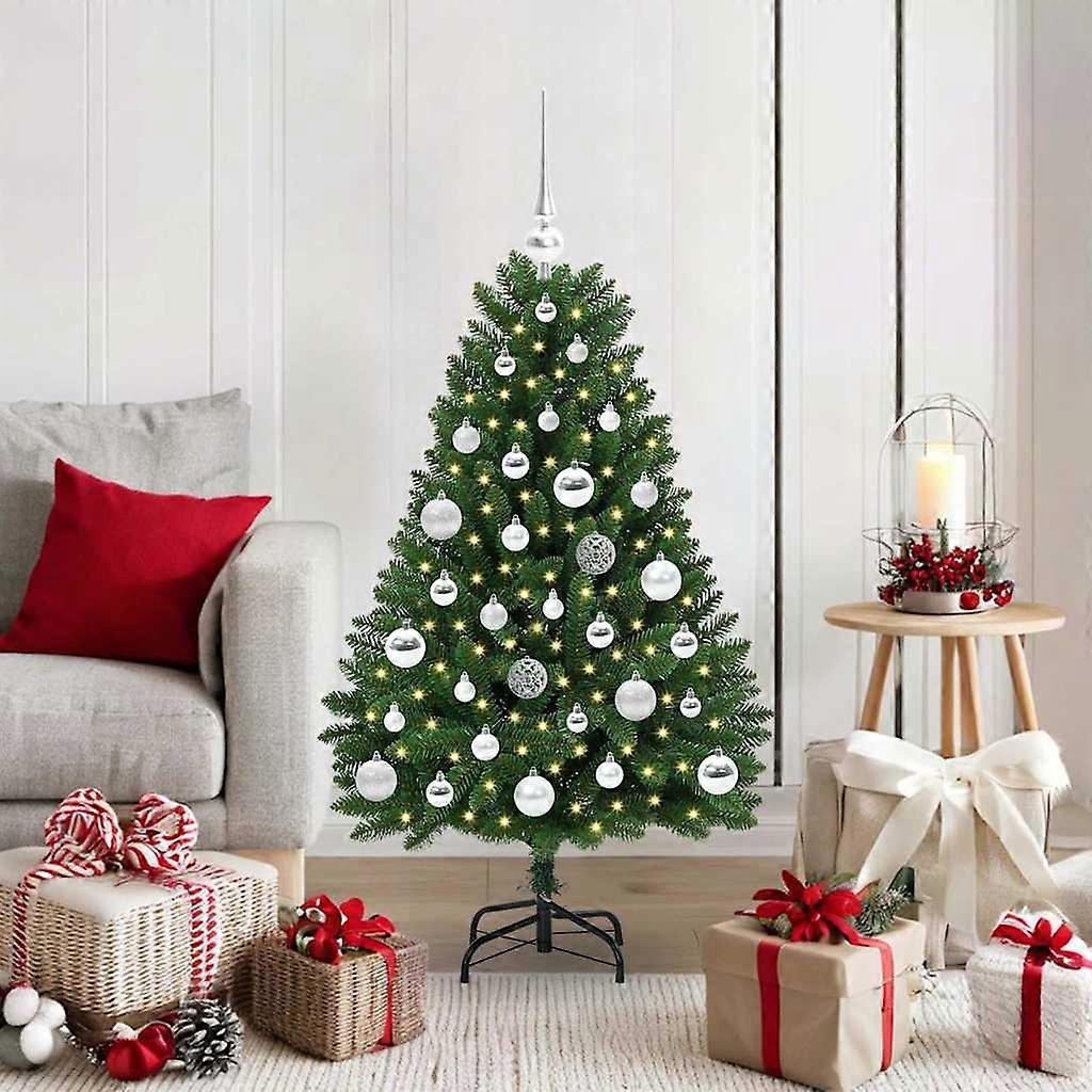 Farbe: GrünMaterial: PVC und MetallBaumhöhe: 120 cmDurchmesser unten: 68 cmGröße des Ständers: 30 x 13 cmMit Christbaumkugelset8 BeleuchtungsmodiAnzahl der PVC-Spitzen: 388Lichttyp: LED-StreifenFarbe der Lichter: Warmes WeißAnzahl der LEDs: 150Stromquelle: USBBatterien inklusive: NeinSpannung: 5 VInnen- / Außenbereich: Verwendung im Innenbereich und geschützten AußenbereichMontage erforderlich: JaLieferumfang:1 x künstlicher klappbarer Weihnachtsbaum1 x Ständer1 x LED Lichterkette1 x Spitze20 x 3 cm Kugel21 x 4 cm Kugel20 x 6 cm Kugel Dieses Produkt wird mit 5 V Gleichstrom betrieben, aber die zertifizierte 5-V-USB-Stromquelle ist nicht im Lieferumfang enthalten. Eine höhere Spannung kann zu einer Überhitzung führen und das Gerät beschädigen sowie das Risiko von Überhitzung und Brand verursachen.