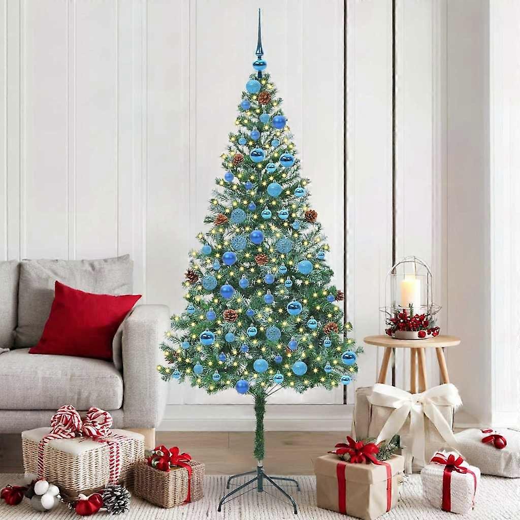 Dieses einzigartige und moderne Dekostück in Kegelform ist sowohl für drinnen als auch für draußen gemacht. Das Design passt perfekt zur Weihnachtszeit, mit einer strukturierten PVC-Oberfläche und einem schicken Grünton, der in deinem Wohnzimmer oder auf der Terrasse für festliche Stimmung sorgt. Texturiertes Kegel-Design: Diese Deko hat eine kegelförmige Struktur, die jeden Raum mit ihren interessanten Texturen und schicker Eleganz aufwertet. Sie sorgt für einen tollen visuellen Effekt und ist ein echter Blickfang in Wohnräumen und Gärten. Dekorative Lichterketten: Verschönert mit Lichtern sorgt dieses Stück für eine tolle Atmosphäre. Die Lichter sind speziell für festliche Anlässe gemacht und bringen überall einen zauberhaften Glanz, sowohl Tagsüber als auch abends. LED-Wärme: Die integrierte LED-Lampe strahlt ein warmes Weiß aus und schafft eine gemütliche und einladende Stimmung, egal wo. Mit LEDs, die für ihre Energieeffizienz bekannt sind, hast du während der Feiertage eine konstante und angenehme Beleuchtung. Vielseitige Nutzung: Ideal für drinnen und draußen, passt dieses Stück überall hin. Ob im Wohnzimmer oder elegant auf der Terrasse, es fügt sich problemlos ein und hebt die festliche Stimmung überall. Einfache Montage: Auch wenn du es zusammenbauen musst, ist der Vorgang total unkompliziert und kann von zwei Personen gemacht werden. Jedes Teil kommt mit klaren Anweisungen, damit alles gut passt, sodass du schnell eine charmante saisonale Deko genießen kannst. Farbe: GrünMaterial: PVC und StahlBaumhöhe: 180 cmDurchmesser unten: 90 cmGröße des Ständers: 40 cmLanglebigDekoriere mit KegelnLebensechte Astspitzen mit frosted SchneeAnzahl der Tannenzapfen: 12Lichttyp: Dekorative LichterkettenFarbe der Lichter: Warmes WeißAnzahl der LEDs: 300Abstand zwischen LEDs: 10 cmLED-Blitzmodi: 8Stromquelle: USBBatterien inklusive: NeinInnen- / Außenbereich: Verwendung im Innenbereich und geschützten AußenbereichMontage erforderlich: JaLieferumfang:1xWeihnachtsbaum,1xLED-Lichtschlauch,1xSpitze,40x6cmBall,40x4cmBall,40x3cmBall Dieses Produkt wird mit 5 V Gleichstrom betrieben, aber die zertifizierte 5-V-USB-Stromquelle ist nicht im Lieferumfang enthalten. Eine höhere Spannung kann zu einer Überhitzung führen und das Gerät beschädigen sowie das Risiko von Überhitzung und Brand verursachen.