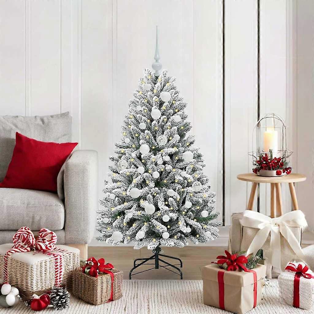 Farbe: Grün und WeißMaterial: PVC und MetallBaumhöhe: 120 cmDurchmesser unten: 68 cmGröße des Ständers: 30 x 13 cmMit Christbaumkugelset8 BeleuchtungsmodiDekoriert mit flockigem SchneeAnzahl der PVC-Spitzen: 388Lichttyp: LED-StreifenFarbe der Lichter: Warmes WeißAnzahl der LEDs: 150Stromquelle: USBBatterien inklusive: NeinSpannung: 5 VInnen- / Außenbereich: Verwendung im Innenbereich und geschützten AußenbereichMontage erforderlich: JaLieferumfang:1 x künstlicher klappbarer Weihnachtsbaum1 x Ständer1 x LED Lichterkette1 x Spitze20 x 3 cm Kugel21 x 4 cm Kugel20 x 6 cm Kugel Dieses Produkt wird mit 5 V Gleichstrom betrieben, aber die zertifizierte 5-V-USB-Stromquelle ist nicht im Lieferumfang enthalten. Eine höhere Spannung kann zu einer Überhitzung führen und das Gerät beschädigen sowie das Risiko von Überhitzung und Brand verursachen.