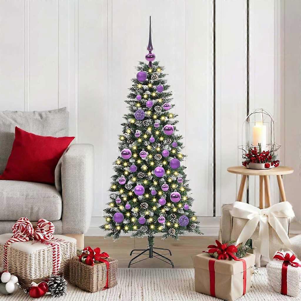 Dieser moderne künstliche Weihnachtsbaum gibt jedem Raum einen eleganten festlichen Touch. Er verbindet zeitgemäßes Design mit Feiertagstraditionen und ist die ideale Mitte für drinnen und draußen, die einladendes Licht verbreitet. Elegantes modernes Design: Mit klaren Linien und wenig Schmuck zeigt dieser Baum moderne Ästhetik. Seine klare Form passt perfekt zur zeitgenössischen Einrichtung und schafft eine stilvolle, zeitlose Festtagsatmosphäre. Praktische USB-Verbindung: Der Baum hat einen USB-Anschluss, was dir viele Stromoptionen gibt und das Setup ohne Steckdosen total einfach macht. Du kannst ihn überall im Haus oder draußen platzieren. Warme weiße LED-Lichter: Dieser Baum bringt charmante, energieeffiziente LED-Lichter in dein Zuhause. Der sanfte, warmweiße Schein sorgt für eine einladende Atmosphäre, perfekt für fröhliche Zusammenkünfte im gemütlichen Wohnzimmer oder auf der schönen Terrasse. Robuste PVC- und Stahlkonstruktion: Der Baum besteht aus hochwertigem PVC und hat einen stabilen Stahlrahmen, was ihn langlebig und dennoch leicht für den Transport macht. So übersteht er jedes Jahr die Feiertage. Einfache Montage und Pflege: Du brauchst nur einen Schraubendreher, um ihn schnell aufzubauen. Wenn er nicht in Benutzung ist, decke den Baum einfach ab und schütze ihn über die kalte Jahreszeit.