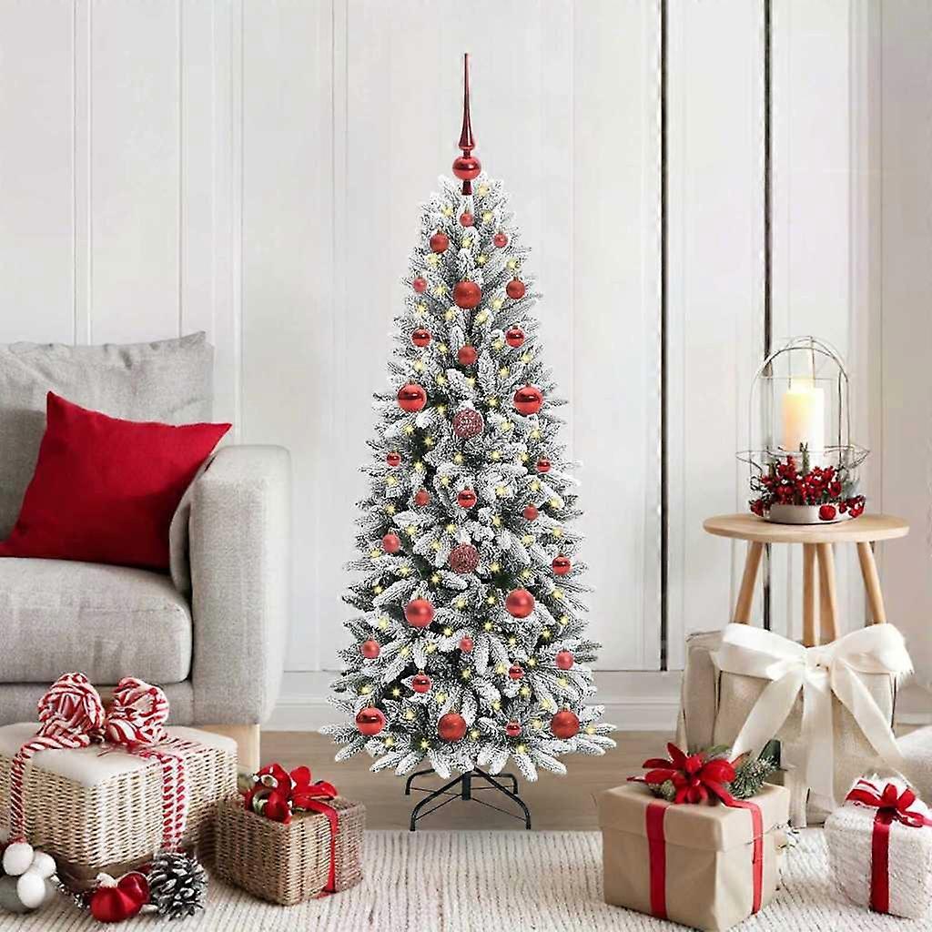 Dieser moderne künstliche Weihnachtsbaum hat einen coolen, zeitgenössischen Stil, perfekt für alle, die schlichte Eleganz mögen. Mit seinen klaren Linien und dem funktionalen Design fügt er sich nahtlos in Innen- und Außenbereiche ein und bringt einen schicken Touch in deine festliche Deko. Die ansprechende Kegelform und die warmen LED-Leuchten verwandeln jeden Raum in ein Winterwunderland und schaffen eine gemütliche Atmosphäre für Familie und Freunde. Material: Aus hochwertigem PVC, das wie echtes immergrünes Laub aussieht, ohne Pflegeaufwand. Robust und lebendig saison für saison. Der grüne Farbton passt perfekt zu deiner Festtagsdeko. Enthaltene Komponenten: Dieser Baum kommt mit LED-Streifenlichtern und USB-Anschluss, die sicheres Licht bieten. Die LEDs strahlen warmweiß und schaffen eine einladende Atmosphäre. Die Lichter sind einfach einstellbar, damit du die Stimmung bei deinen Feiertagsversammlungen selbst bestimmen kannst. Dekorative Merkmale: Schlichte, aber auffällige Dekorationen verbessern den modernen Look des Baumes. Diese dekorativen Akzente bringen Eleganz und Raffinesse in deinen Wohnraum oder Außenbereich. Empfohlene Anwendungen: Perfekt für gemütliche Wohnzimmer und offene Terrassen. Seine kompakte, aber auffällige Form passt super in kleine Räume oder wird zum Blickfang in großen Räumen. Flexibel für jeden Dekorationsstil. Pflege und Wartung: Schütze den Baum vor Staub und Dreck, indem du ihn abdeckst, wenn du ihn nicht nutzt. Für die LED-Leuchten brauchst du eine zertifizierte 5V-USB-Stromquelle, damit alles während der Feiertagssaison optimal funktioniert. Farbe: WeißMaterial: PVC und Plastik und Stahl und PEBaumhöhe: 120 cmDurchmesser unten: 53 cmGröße des Ständers: 35 x 35 cmScharnieräste für einfache MontageLebensechte TippsSchneebedecktAnzahl der PE-Spitzen: 94Anzahl der PVC-Spitzen: 189Anzahl der Christbaumkugeln: 61Lichttyp: LED-StreifenFarbe der Lichter: Warmes WeißLänge der Lichter: 150 cmAnzahl der LEDs: 150Abstand zwischen LEDs: 10 cmLED-Blitzmodi: 8Stromquelle: USBBatterien inklusive: NeinSpannung: 5 VLeistung: 5 WInnen- / Außenbereich: Verwendung im Innenbereich und geschützten AußenbereichMontage erforderlich: JaLieferumfang:1 x künstlicher Weihnachtsbaum1 x klappbarer Ständer1 x LED Lichterkette1 x Spitze20 x 3 cm Kugel21 x 4 cm Kugel20 x 6 cm Kugel Dieses Produkt wird mit 5 V Gleichstrom betrieben, aber die zertifizierte 5-V-USB-Stromquelle ist nicht im Lieferumfang enthalten. Eine höhere Spannung kann zu einer Überhitzung führen und das Gerät beschädigen sowie das Risiko von Überhitzung und Brand verursachen.