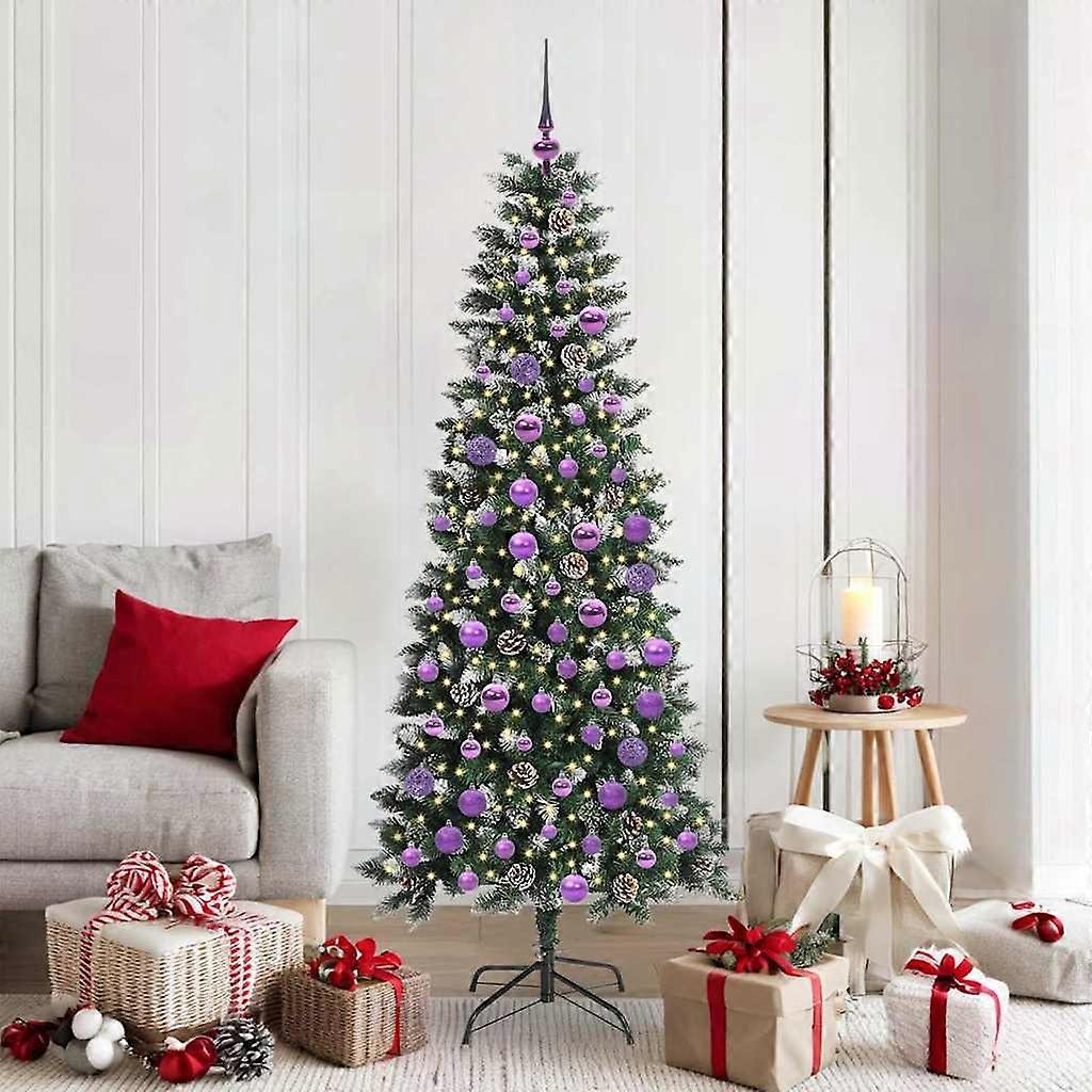 Farbe: GrünMaterial: PVC und Kunststoff und StahlBaumhöhe: 180 cmDurchmesser unten: 76 cmGröße des Ständers: 45 x 45 cmScharnieräste für einfache MontageLebensechte TippsSchneebedecktDekoriert mit TannenzapfenAnzahl der PVC-Spitzen: 609Anzahl der Tannenzapfen: 34Anzahl der Christbaumkugeln: 120Lichttyp: LED-StreifenFarbe der Lichter: Warmes WeißLänge der Lichter: 300 cmAnzahl der LEDs: 300Abstand zwischen LEDs: 10 cmLED-Blitzmodi: 8Stromquelle: USBBatterien inklusive: NeinSpannung: 5 VLeistung: 5 WInnen- / Außenbereich: Verwendung im Innenbereich und geschützten AußenbereichMontage erforderlich: JaLieferumfang:1 x Künstlicher Weihnachtsbaum1 x Klappständer1 x LED Lichterkette1 x Spitze40 x 3 cm Kugel40 x 4 cm Kugel40 x 6 cm Kugel Dieses Produkt wird mit 5 V Gleichstrom betrieben, aber die zertifizierte 5-V-USB-Stromquelle ist nicht im Lieferumfang enthalten. Eine höhere Spannung kann zu einer Überhitzung führen und das Gerät beschädigen sowie das Risiko von Überhitzung und Brand verursachen.