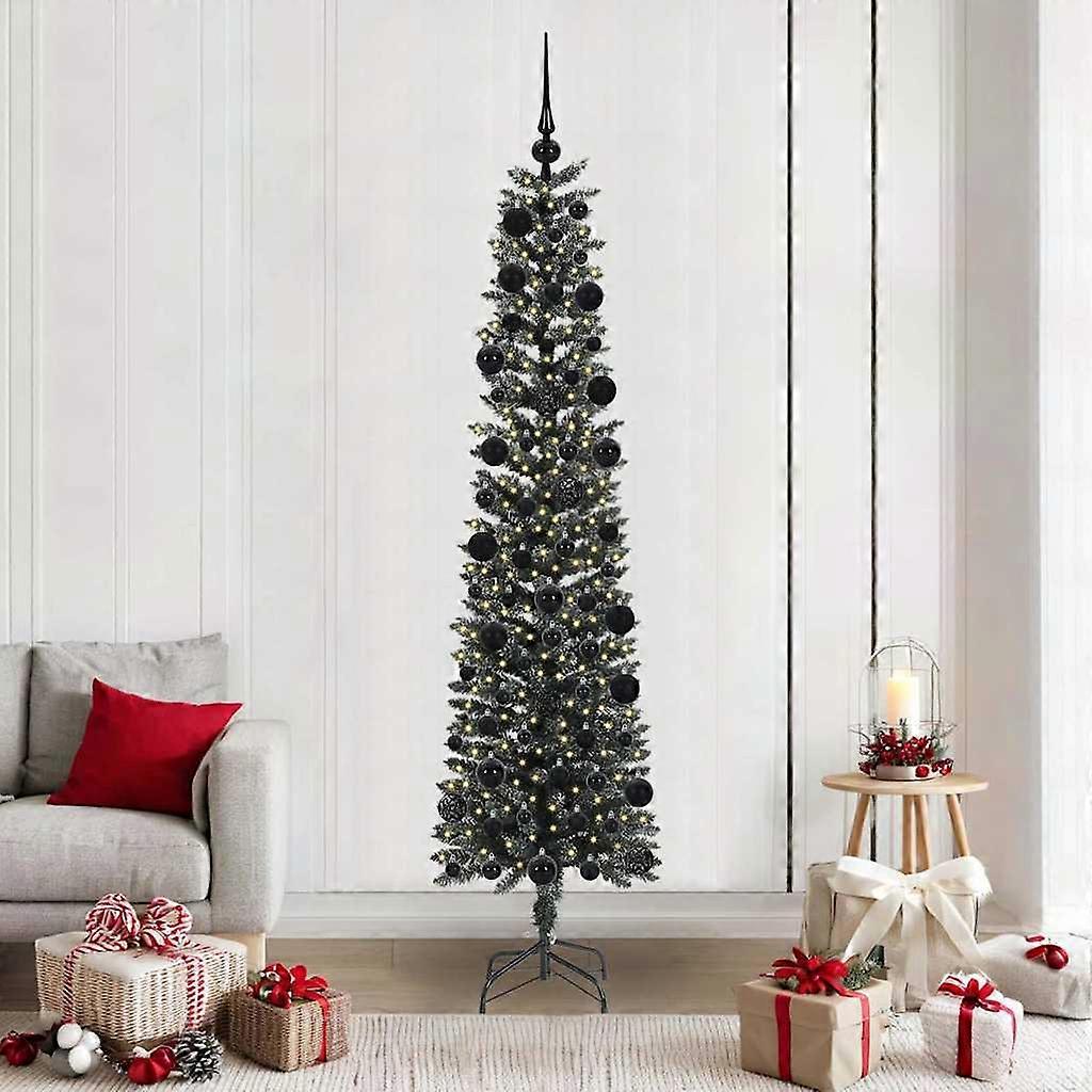 Dieser moderne künstliche Weihnachtsbaum kombiniert elegantes Design mit funktionalem Stil und ist eine tolle Ergänzung für deine saisonale Dekoration. Seine kegelförmige Form spiegelt moderne Einfachheit wider und passt sich drinnen und draußen nahtlos an. Er bringt mit seinen eingebauten LED-Streifenlichtern, die warmweißes Licht erzeugen, den Glanz der Feiertage in dein Zuhause und verstärkt den festlichen Geist. Materialien: Der künstliche Weihnachtsbaum ist aus hochwertigem PVC gemacht, das für Langlebigkeit sorgt und sowohl drinnen als auch draußen verwendet werden kann. Das hochwertige Material hält über viele festliche Saisons sein üppiges Aussehen und ist dabei leicht. Inklusive Komponenten: Mit den LED-Streifenlichtern und dem USB-Anschluss beleuchtet dieser Baum dein festliches Setting mühelos. Die LED-Technologie sorgt für energieeffizientes Licht, und der USB-Stecker erlaubt dir, den Baum von einem Computer, einer Powerbank oder jeder USB-fähigen Steckdose zu betreiben. Funktionen / Funktion / Design: Das kegelförmige Design bringt einen modernen Flair, der zu verschiedenen Dekorationsstilen passt. Mit seinen warmweißen LEDs schafft der Baum eine bezaubernde Atmosphäre und wird zum Mittelpunkt jeder Feier. Empfohlene Verwendung: Perfekt für Wohnzimmer oder Außenterrassen, bringt dieser Baum ein einladendes Licht für alle Zusammenkünfte. Sein elegantes Aussehen und praktisches Design passen in viele Umgebungen und verbreiten Freude und festlichen Charme. Pflege & Wartung: Um die Qualität zu erhalten, decke den Baum ab, wenn du ihn nicht verwendest, um ihn vor Staub und anderen Schäden zu schützen. Lagere ihn an einem schattigen Ort, damit sein Aussehen länger erhalten bleibt. Farbe: GrünMaterial: PVC und Plastik und StahlBaumhöhe: 210 cmDurchmesser unten: 58 cmGröße des Ständers: 40 x 40 cmLebensechte TippsSchneebedecktAnzahl der PVC-Spitzen: 356Anzahl der Christbaumkugeln: 120Lichttyp: LED-StreifenFarbe der Lichter: Warmes WeißLänge der Lichter: 300 cmAnzahl der LEDs: 300Abstand zwischen LEDs: 10 cmLED-Blitzmodi: 8Stromquelle: USBBatterien inklusive: NeinSpannung: 5 VLeistung: 5 WInnen- / Außenbereich: Verwendung im Innenbereich und geschützten AußenbereichMontage erforderlich: JaLieferumfang:1 x Künstlicher Weihnachtsbaum1 x Klappständer1 x LED Lichterkette1 x Spitze40 x 3 cm Kugel40 x 4 cm Kugel40 x 6 cm Kugel Dieses Produkt wird mit 5 V Gleichstrom betrieben, aber die zertifizierte 5-V-USB-Stromquelle ist nicht im Lieferumfang enthalten. Eine höhere Spannung kann zu einer Überhitzung führen und das Gerät beschädigen sowie das Risiko von Überhitzung und Brand verursachen.