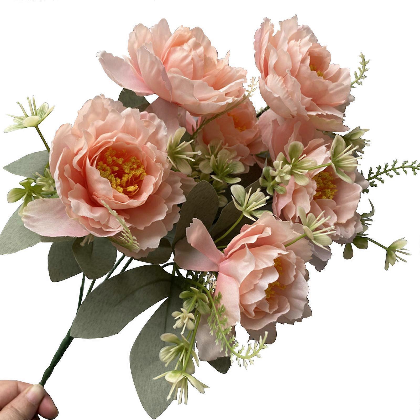 Artificial Flower Bouquet Rose Pink Silk Peony Red 5 Colors 6 Heads Indoor Real Touch Decorative Plastic Decorations