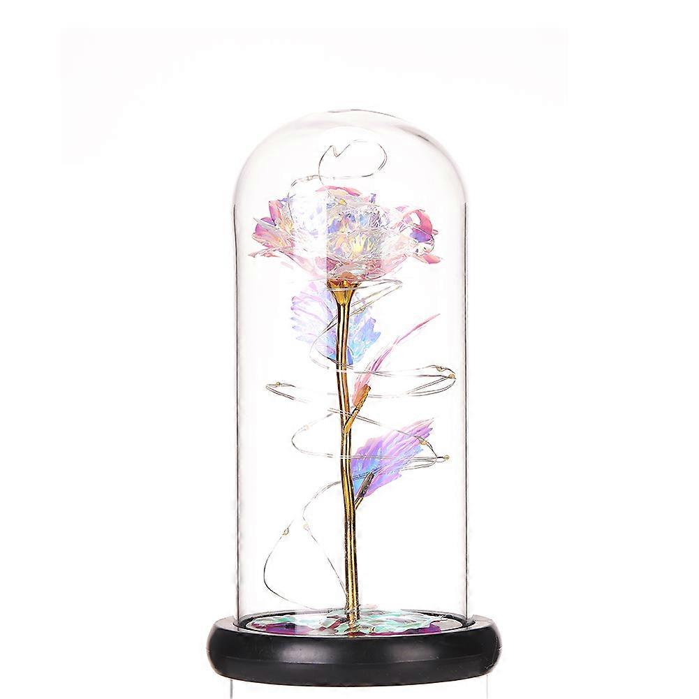 Artificial Foil Rose String Ornament Never Fade Rose Glass Dome With Lights Art For Living Room Crafts Home Decoration Gifts