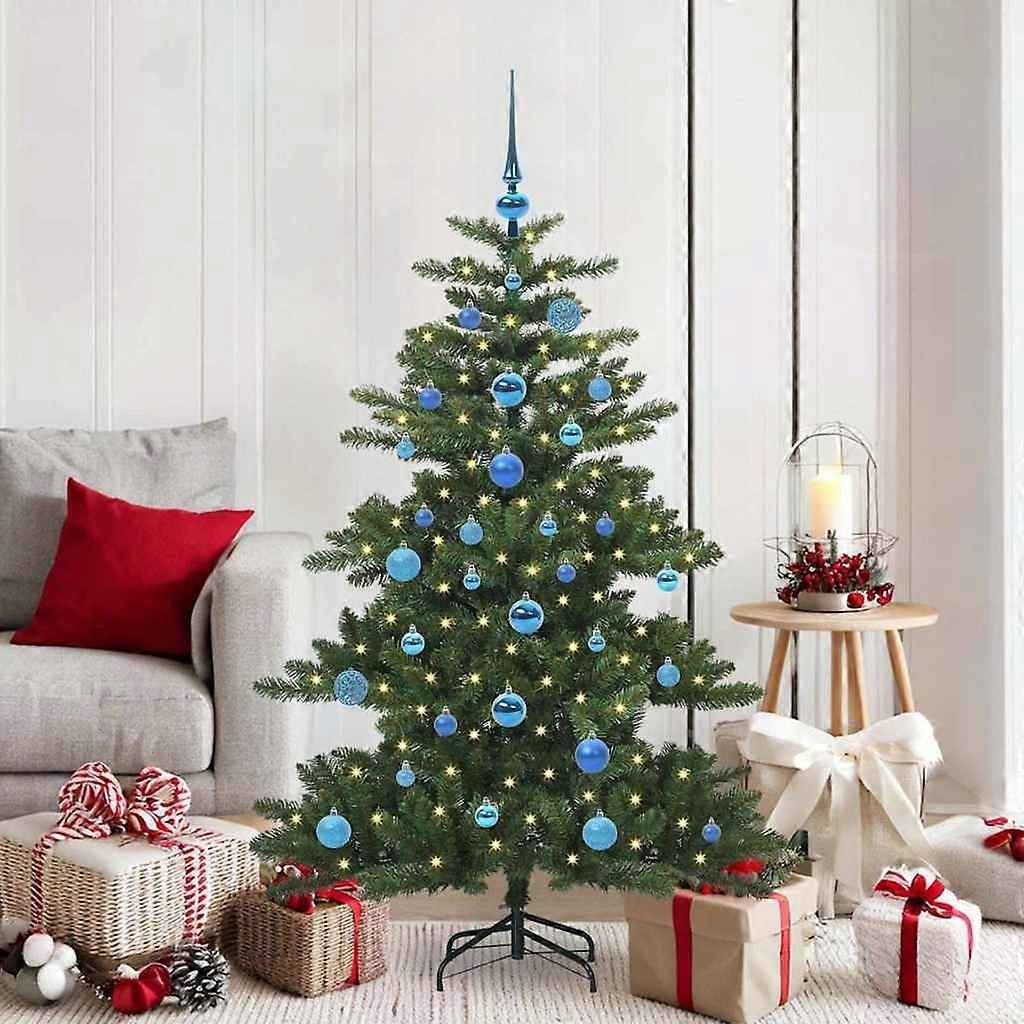 Farbe: GrünMaterial: PVC und StahlBaumhöhe: 150 cmDurchmesser unten: 104 cmGröße des Ständers: 35 cmGelenkige Konstruktion für den Aufbau, Lebensechte Tipps, Faltbarer StandNumber of PVC Tips: 519Anzahl der Christbaumkugeln: 61Lichttyp: Dekorative LichterkettenFarbe der Lichter: Warmes WeißLänge der Lichter: 3000 cmAnzahl der LEDS: 150LED-Blitzmodi: 8Stromquelle: USBBatterien inklusive: NeinSpannung: 5 VKabellänge: 200 cmDrinnen & Draußen: Nur für den InnenbereichMontage erforderlich: JaLieferumfang:1 x Weihnachtsbaum1 x Ständer1 x LED Lichterkette1 x Spitze20 x 3 cm Kugel21 x 4 cm Kugel20 x 6 cm Kugel Dieses Produkt wird mit 5 V Gleichstrom betrieben, aber die zertifizierte 5-V-USB-Stromquelle ist nicht im Lieferumfang enthalten. Eine höhere Spannung kann zu einer Überhitzung führen und das Gerät beschädigen sowie das Risiko von Überhitzung und Brand verursachen.