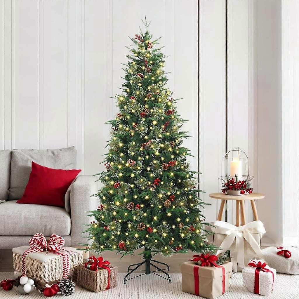 Farbe: GrünMaterial: PE und PVCBaumhöhe: 180 cmDurchmesser unten: 90 cmGröße des Ständers: 45 cmLanglebigLebensechte TippsFaltbarerStänderGelenkige Konstruktion für den AufbauNumber of PE Tips: 109Number of PVC Tips: 451Anzahl der Nadelspitzen: 108Anzahl der Tannenzapfen: 50Anzahl der roten Beeren: 50Lichttyp: Dekorative LichterkettenFarbe der Lichter: Warmes WeißLänge der Lichter: 3000 cmAnzahl der LEDS: 300Abstand zwischen LEDS: 10 cmLED-Blitzmodi: 8Stromquelle: USBBatterien inklusive: NeinSpannung: 5 VDrinnen & Draußen: Verwendung im Innenbereich und geschützten AußenbereichMontage erforderlich: JaLieferumfang:1 x Christbaum1 x faltbarer Ständer1 x LED-Lichterkette Dieses Produkt wird mit 5 V Gleichstrom betrieben, aber die zertifizierte 5-V-USB-Stromquelle ist nicht im Lieferumfang enthalten. Eine höhere Spannung kann zu einer Überhitzung führen und das Gerät beschädigen sowie das Risiko von Überhitzung und Brand verursachen.