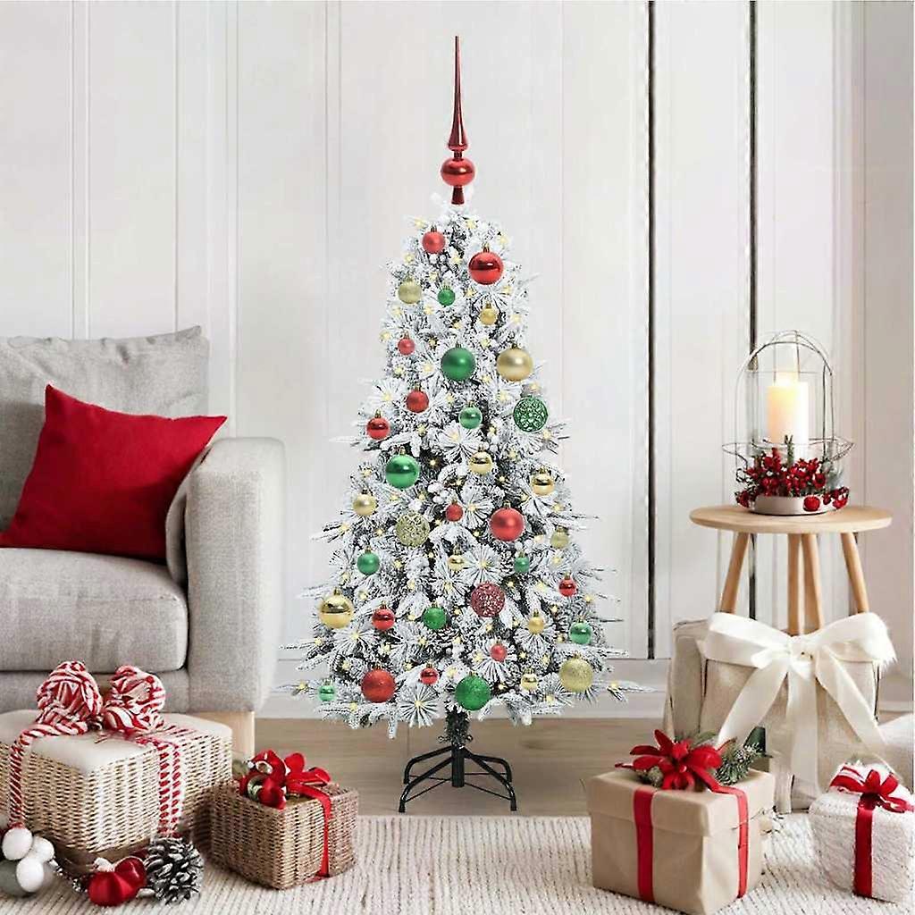 Farbe: WeißMaterial: PE und PVCBaumhöhe: 120 cmDurchmesser unten: 60 cmGröße des Ständers: 30 cmLanglebigLebensechte TippsFaltbarerStänderGelenkige Konstruktion für den AufbauNumber of PE Tips: 43Number of PVC Tips: 196Anzahl der Nadelspitzen: 42Anzahl der Tannenzapfen: 30Anzahl der roten Beeren: 30Anzahl der Christbaumkugeln: 61Lichttyp: Dekorative LichterkettenFarbe der Lichter: Warmes WeißLänge der Lichter: 3000 cmAnzahl der LEDS: 150Abstand zwischen LEDS: 10 cmLED-Blitzmodi: 8Stromquelle: USBBatterien inklusive: NeinSpannung: 5 VDrinnen & Draußen: Verwendung im Innenbereich und geschützten AußenbereichMontage erforderlich: JaLieferumfang:1 x Weihnachtsbaum1 x zusammenklappbarer Ständer1 x LED Lichterkette1 x Spitze20 x 3 cm Kugel21 x 4 cm Kugel20 x 6 cm Kugel Dieses Produkt wird mit 5 V Gleichstrom betrieben, aber die zertifizierte 5-V-USB-Stromquelle ist nicht im Lieferumfang enthalten. Eine höhere Spannung kann zu einer Überhitzung führen und das Gerät beschädigen sowie das Risiko von Überhitzung und Brand verursachen.