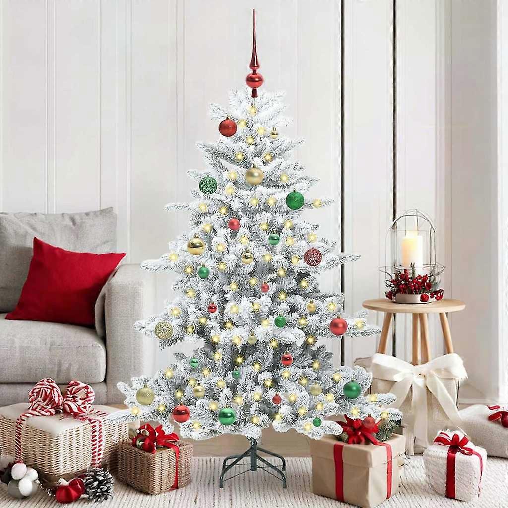 Farbe: WeißMaterial: PVC und StahlBaumhöhe: 150 cmDurchmesser unten: 104 cmGröße des Ständers: 35 cmGelenkige Konstruktion für den Aufbau, Lebensechte Tipps, Faltbarer StandNumber of PVC Tips: 519Anzahl der Christbaumkugeln: 61Lichttyp: Dekorative LichterkettenFarbe der Lichter: Warmes WeißLänge der Lichter: 3000 cmAnzahl der LEDS: 150LED-Blitzmodi: 8Stromquelle: USBBatterien inklusive: NeinSpannung: 5 VKabellänge: 200 cmDrinnen & Draußen: Nur für den InnenbereichMontage erforderlich: JaLieferumfang:1 x Weihnachtsbaum1 x Ständer1 x LED Lichterkette1 x Spitze20 x 3 cm Kugel21 x 4 cm Kugel20 x 6 cm Kugel Dieses Produkt wird mit 5 V Gleichstrom betrieben, aber die zertifizierte 5-V-USB-Stromquelle ist nicht im Lieferumfang enthalten. Eine höhere Spannung kann zu einer Überhitzung führen und das Gerät beschädigen sowie das Risiko von Überhitzung und Brand verursachen.
