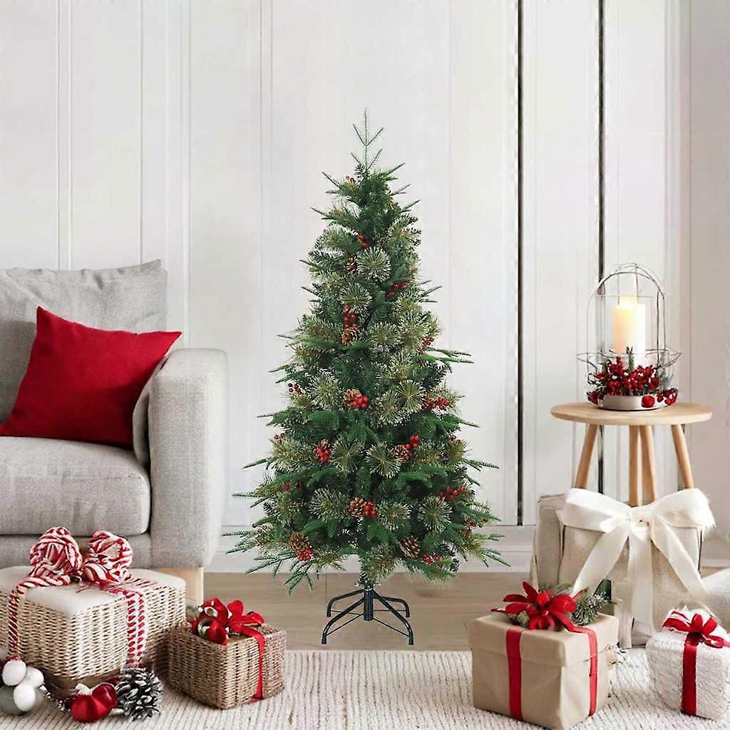 Dieser moderne künstliche Weihnachtsbaum verwandelt jeden Wohnraum oder Garten in ein festliches Wunderland. Mit seinen klaren Linien und kaum Ornamenten stellt er die traditionelle Weihnachtsdekoration auf den Kopf und bietet ein schickes, einfaches Design. Ideal für drinnen und draußen, bringt dieser Baum einen modernen Charme mit sich und ist die perfekte Bühne für deine festlichen Ornamente. Sein anpassungsfähiges Design wird nicht nur zum Mittelpunkt für vorweihnachtliche Freude, sondern fügt sich auch in verschiedene Dekorationsstile ein und macht in jedem Setting eine gute Figur. PVC-Material: Dieser künstliche Weihnachtsbaum ist aus hochwertigem PVC gefertigt und sieht echt aus, dadurch wird der Zauber von Weihnachten lebendig. Das PVC sorgt dafür, dass der Baum langlebig und robust ist, sodass er jedes Jahr frisch wirkt. Genieße eine pflegeleichte Weihnachtszeit, denn das PVC-Laub braucht kein Gießen oder besondere Pflege. Scharniere Äste: Mit scharnierten Ästen ist der Aufbau super einfach, denn sie entfalten sich mühelos. Du kannst die Äste so hinrichten, wie du es brauchst, um eine üppige und stilvolle Darstellung zu kreieren. So sparst du dir die Mühe, jeden Ast einzeln montieren zu müssen ? alles geht ganz schnell und stressfrei. Dekorative Merkmale: Vor allem für die Dekoration gedacht, bietet dieser Baum viel Platz, um deinen kreativen Ideen freien Lauf zu lassen. Schmücke ihn mit Lichtern, Kugeln und Girlanden, damit jeder festliche Moment noch schöner wird. Seine Flexibilität erlaubt es, dass er sich deinem persönlichen Stil anpasst ? egal, ob klassisch oder modern. Innen- und Außenvielseitigkeit: Ideal für gemütliche Wohnräume und einladende Gartenterrassen, ist dieser Baum für jede Umgebung geeignet. Ob du es dir drinnen gemütlich machst oder die festliche Stimmung bei Outdoor-Feiern verbreiten willst, seine Vielseitigkeit macht ihn zu einer großartigen Wahl. Passe dein Setting ganz nach Belieben an, ohne den Stil zu verlieren. Einfacher Aufbau und Pflege: Der Aufbau geht dank der beiliegenden Anleitung kinderleicht, wobei zwei Personen für den sicheren Aufbau empfohlen werden. Nach der Saison kannst du ihn einfach wieder abbauen und platzsparend lagern, damit er für zukünftige Festlichkeiten bereit ist. Außerdem ist er pflegeleicht, sodass du bei jeder Feier frischen Wind und gute Laune zu spüren bekommst. Farbe: GrünMaterial: PVC, PE und StahlBaumhöhe: 120 cmDurchmesser unten: 60 cmGröße des Ständers: 30 x 30 cmDekoriert mit Kiefernnüssen und roten BeerenLebensechte TippsFaltbarerStänderScharnieräste für einfache MontageAnzahl der PE-Spitzen: 43Anzahl der PVC-Spitzen: 196Anzahl der Nadelspitzen: 42Anzahl der Tannenzapfen: 30Anzahl der roten Beeren: 30Innen- / Außenbereich: Verwendung im Innenbereich und geschützten AußenbereichMontage erforderlich: JaLieferumfang:1 x künstlicher faltbarer Weihnachtsbaum1 x zusammenklappbarer Metallständer
