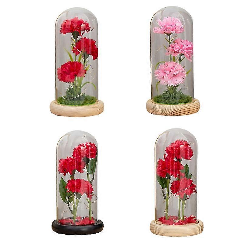Artificial Led Luminous Carnation Soap Flower Shape With Lid Glass Convex Beads