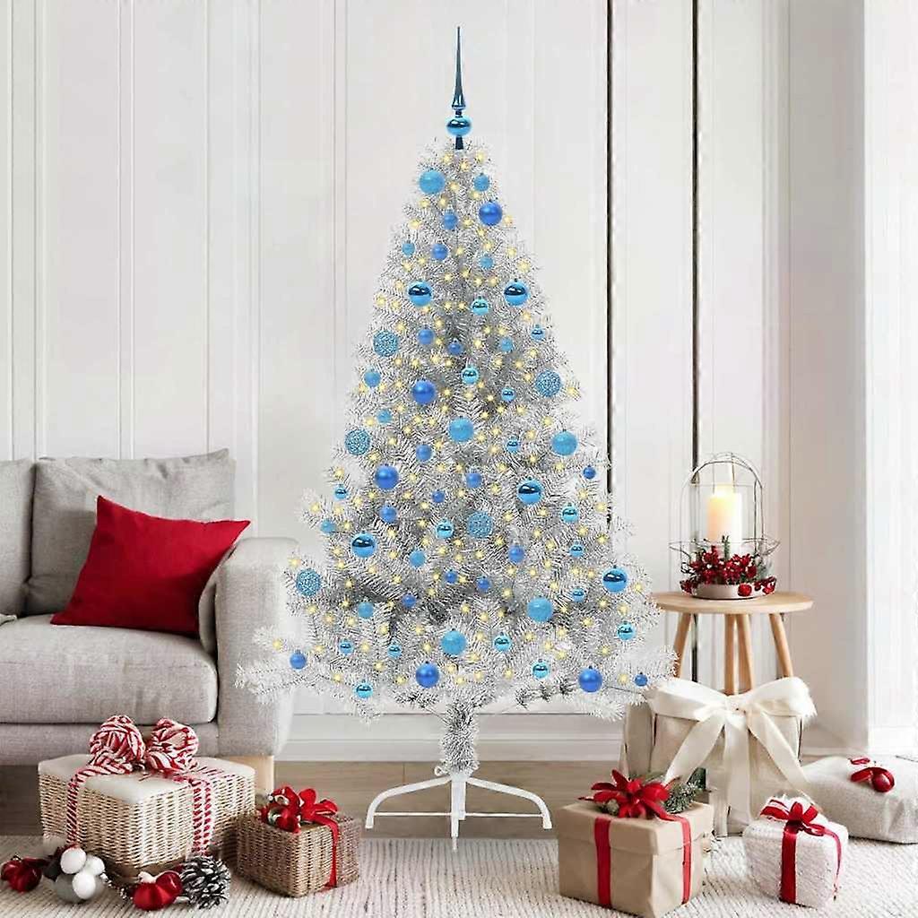 Künstlicher vorbeleuchteter Weihnachtsbaum Silber 180 cm