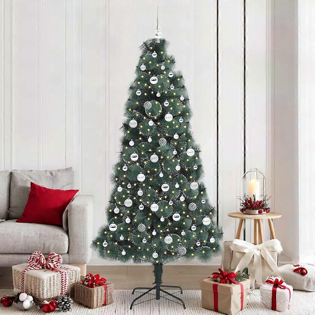 Künstlicher vorbeleuchteter Weihnachtsbaum mit Kugelset 210 cm