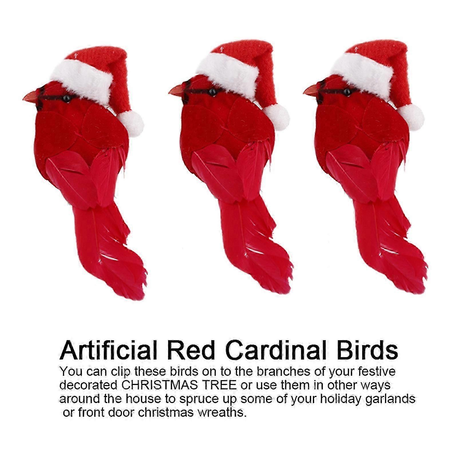Artificial Red Clip-on Cardinals Feathered Bird Christmas Ornament Garden Decoration Miniature Gardening Fake Bird Xmas Tree Decoraation