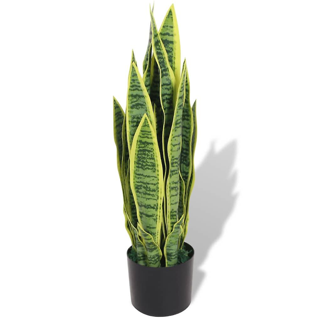Verleihen Sie Ihrer Einrichtung etwas Grün mit dieser lebensechten künstlichen Sansevieria. Die Sansevieria ist 65 cm hoch und wird die perfekte Wahl für Ihr Zuhause oder Büro sein. Die Pflanze hat 21 detailgetreue Blätter, die sie lebensecht erscheinen lässt und den Vorteil, dass sie niemals verwelken wird. Die Farbe variiert von Blatt zu Blatt, um einen realistischen Eindruck zu erwecken. Diese dekorative Kunstpflanze ist aus hochwertigen Materialien gefertigt und sehr langlebig. Sie eignet sich ideal für diejenigen, die einige Pflanzen in ihrem Haus haben möchten, aber keine Zeit haben, sich um sie zu kümmern. Die Lieferung beinhaltet 1 Kunstpflanze und 1 Topf. Pflanzentyp: Bogenhanf (Sansevieria)Pflanzenfarbe: GrünBlättermaterial: Kunststoff und EisendrahtStamm-Material: EchtholzGesamthöhe: 65 cmAnzahl der Blätter: 21Inklusive einem Kunststofftopf: (13,5-15) x 12,5 cm (Durchmesser x H)
