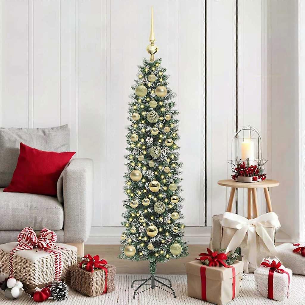 Künstlicher schlanker Weihnachtsbaum Grün und Weiß 150 cm