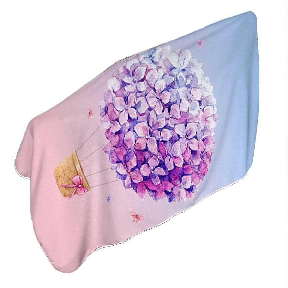 Artistic Purple Flowers Hot Air Balloon Microfiber Beach Towel
