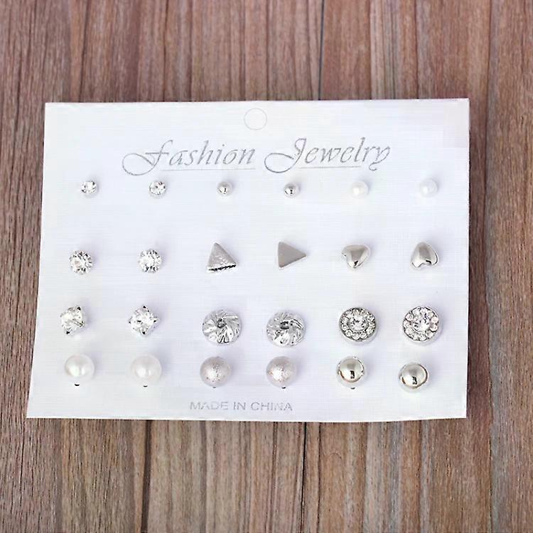 Assorted Stud Earrings Set-12 Pairs Jewelry for Women & Girls-Silver Silver