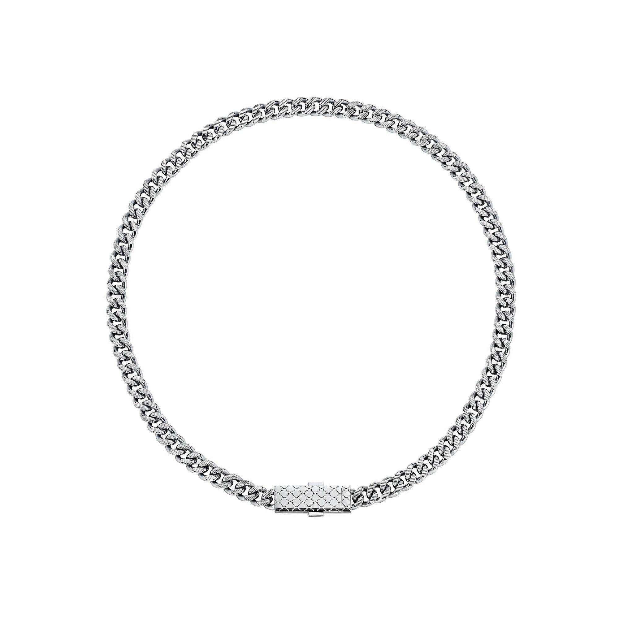 Hersteller:ASTON MARTIN ModellNr :MJIUF5NU0 - Collection AML ICON Material:Herren Halskette aus Edelstahl,Farbe: silber Maße:Länge: ca. 50 cmPlakette / Verschluss Länge / Breite ca. 2,5 cm x 1,0 cm,Breite Kette: ca. 0,7 cm,Verschluss:Kastenverschluss LieferumfangAuslieferung in ASTON MARTIN Box Info:Maskulin, raffiniert und unverkennbar Aston Martin. Diese Gourmette-Halskette besticht durch präzise Rändeldetails auf der geformten Oberfläche, die an die haptische Haptik von Hochleistungs-Bedienelementen erinnern. Der maßgefertigte Kastenverschluss ist mit dem erweiterten Aston Martin-Logo graviert, während die Rückseite das ikonische Muster der Marke zeigt, das mit Absicht und mechanischer Kunstfertigkeit eingraviert wurde.