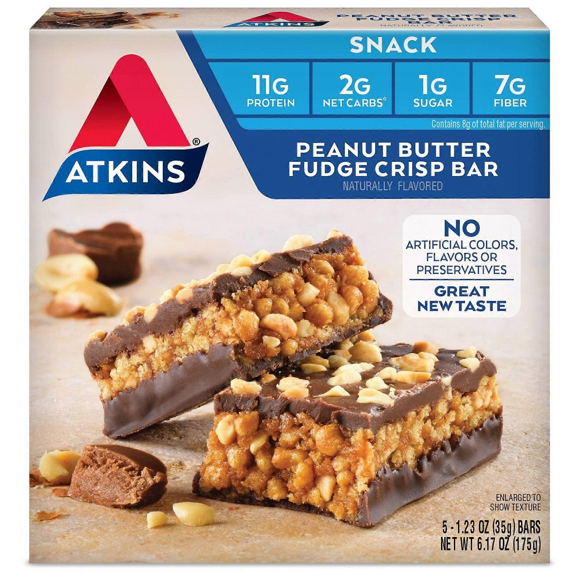 Atkins Snack Bars, Peanut Butter Fudge Crisp, 5 Ea