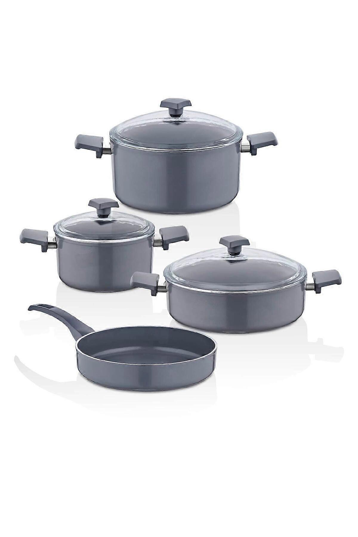 BONERA ATLAS 7 PICES ULTRA CRYSTAL COOKWARE SET Pot & Pan Set Set Contents:18 cm Deep Pot + Lid24 cm Deep Pot + Lid26 cm Low Pot + Lid26 cm Frying Pan Product Features:Heat-resistant Pyrex glass qualityReinforced inner coatingHeat-resistant side handles that do not burn handsLids are included for the pots, except for the panSilicone exterior, granite-coated interiorNon-stick, scratch-resistant coating, PFOA-free100% easy to cleanNot suitable for use on induction cooktopsNote: For long-lasting use, it is recommended not to wash in the dishwasher.