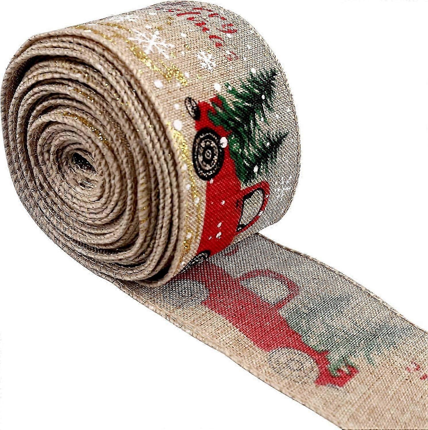 AURA 2 Roll Christmas Ribbon, 2 Inch x 5.5 Yard Red Vintage Truck Ribbon Christmas Tree Bows Ribbon