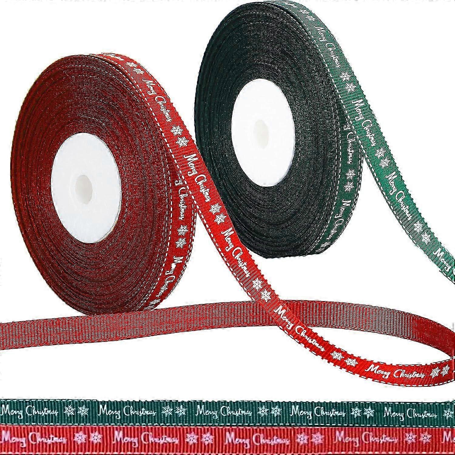AURA 2 Rolls 43 Yard Merry Christmas Ribbon Grosgrain Wrapping Rope Merry Christmas Ribbon with Snowflake Pattern for Christmas Favor Party