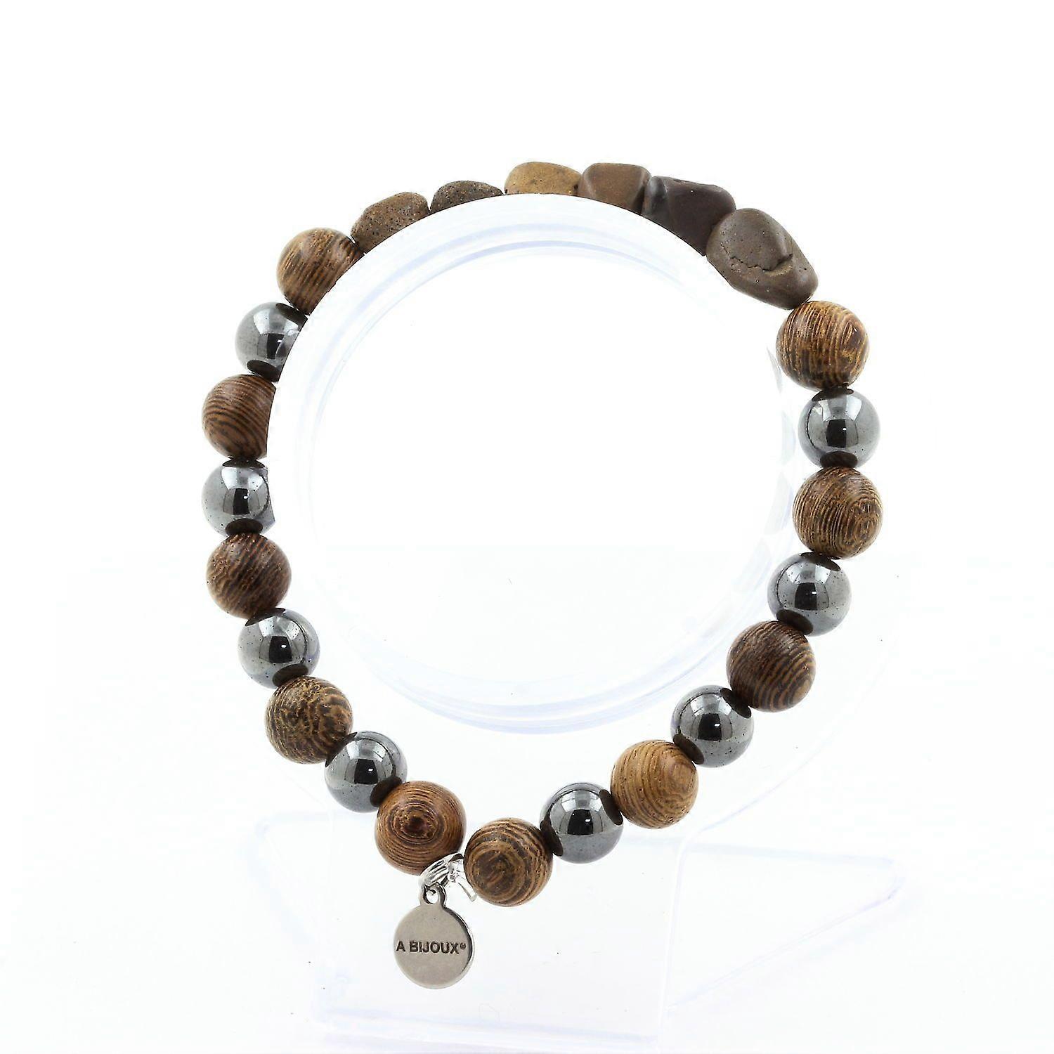 Australian Boulder Opal Bracelet + Hematite Beads + 8 mm wood