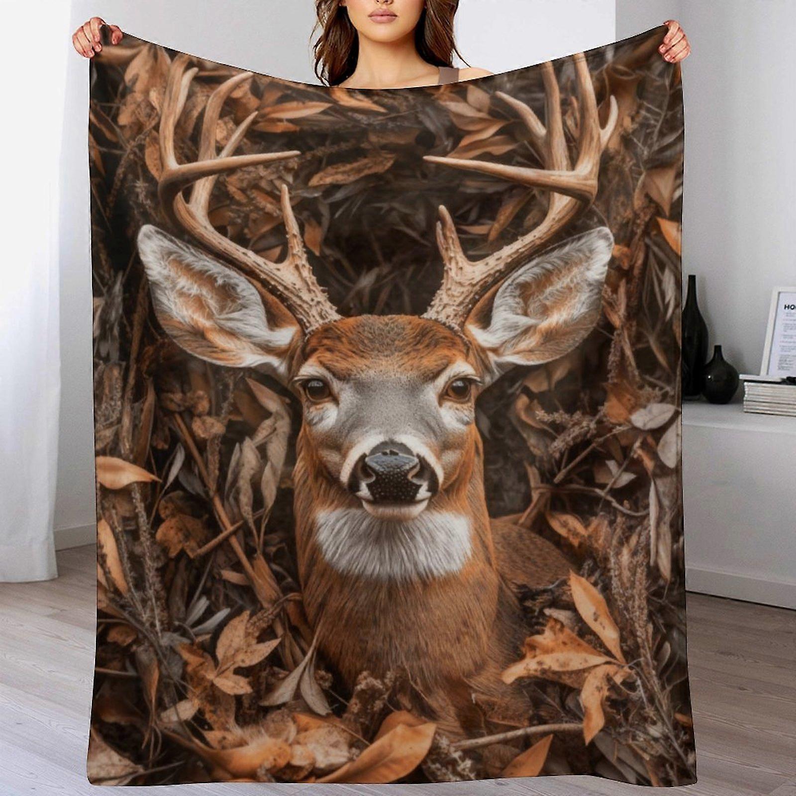 Autumn Forest Buck Print Flannel Blanket - Soft Warm Throw for Living Room | Outdoor Animal Decor for Hunting Enthusiasts