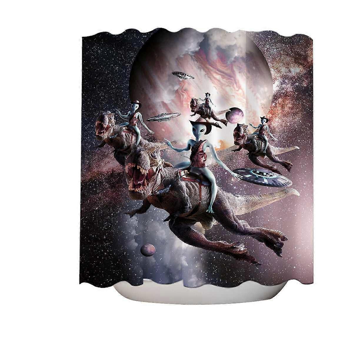 Awesome Cool Art Alien Riding Dinosaur in Space Shower Curtain