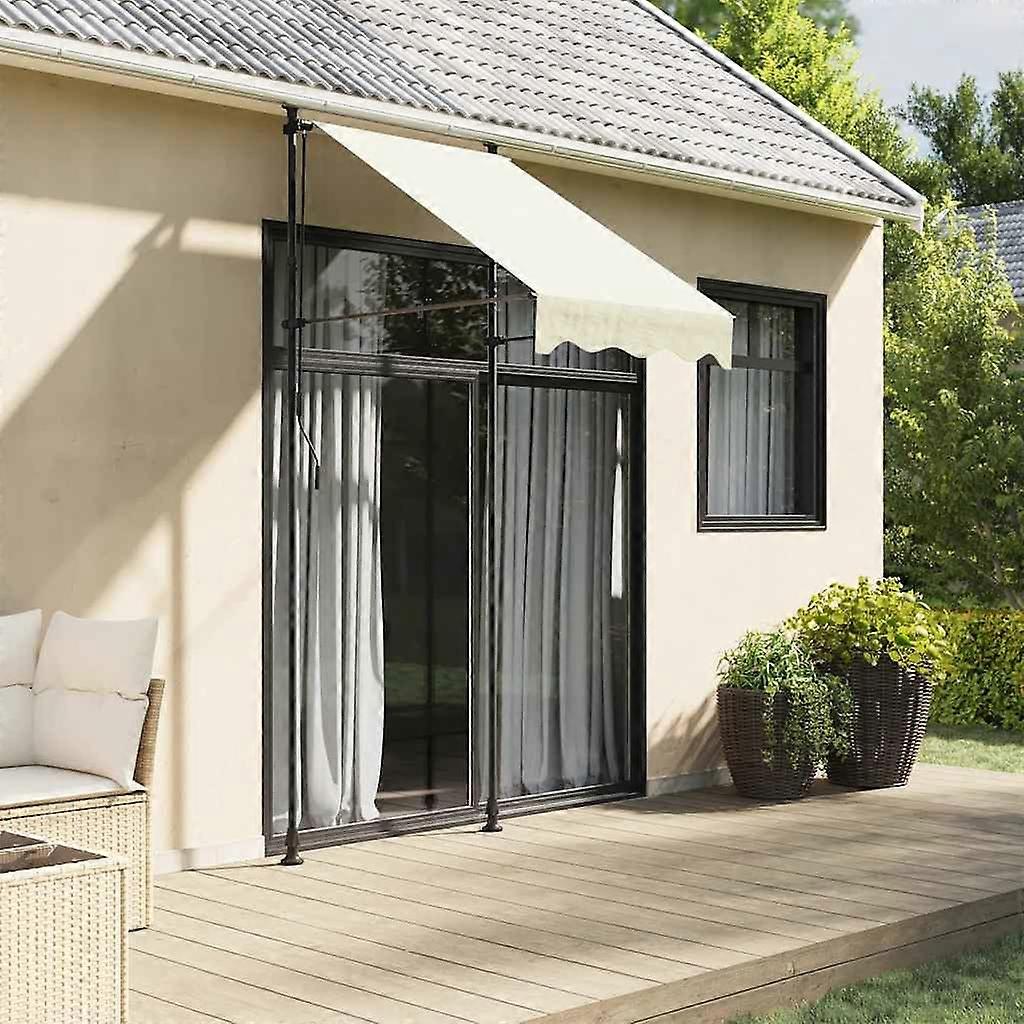 Genieße ein kühles Getränk, eine Leckerei oder ein gutes Gespräch auf deiner Terrasse mit Freunden, während du dich unter dieser einziehbaren Markise entspannst Langlebiges Material: Der Markisenrahmen ist aus Stahl gefertigt, wodurch die Markise robust und langlebig ist. Der Markisenstoff mit PU-Oberflächenbehandlung ist UV-beständig. Diese Markise schützt deine Familie und Gäste vor UV-Strahlen und grellem Sonnenlicht. Einziehbare Markise: Die Außenmarkise ist nach Belieben einziehbar und ausfahrbar, um deinen unterschiedlichen Anforderungen gerecht zu werden. Sie spendet im ausgefahrenen Zustand kühlenden Schatten und versperrt im eingefahrenen Zustand nicht die Sicht. Einstellbare Höhe: Die Höhe der Stützstangen kann zwischen 210 und 300 cm eingestellt werden, sodass dieser Sonnenschutz für eine Vielzahl von Fenstern und Türen geeignet sind. Vielfältige Einsatzmöglichkeiten: Die ausfahrbare Markise zeichnet sich durch ihr schlichtes und stilvolles Design aus, wodurch sie sich gut in private und gewerbliche Räume einfügt. Die Markise eignet sich für eine Vielzahl von Orten: Balkone, Terrassen, Höfe, Restaurants, Cafés, Bistros, Geschäfte und mehr. Markise:Farbe: CremeMaterial: Stoff (180 g/m² Polyester) mit PU-BeschichtungGröße: 100 x 150 cm (L x B)Rahmen:Farbe: AnthrazitMaterial: StahlFlexible Höhe: 210-300 cmLänge der Handkurbel: 125 cmManuelle BedienungZusammenbau erforderlich: Ja