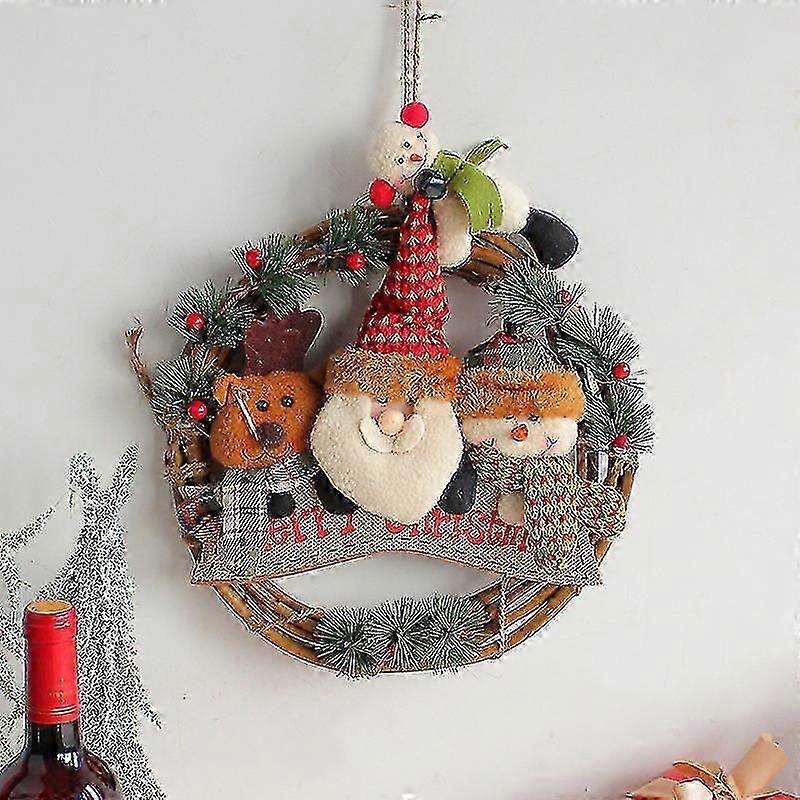 Christmas Themed Hanging DecorationsThis Christmas door ring is decorated with sweet reindeer, snowmen, Santa dolls on durable natural rattan and says "Merry Christmas". It is a beautiful decoration for Christmas. It is suitable for hanging and decorating your house. It can be perfect Add Christmas atmosphere. Charming designThe Christmas wreath is made of rattan, plastic pine leaves and plush dolls, environmentally friendly and harmless. The combination of cute dolls adds wonderful visual enjoyment. Suitable sizeThe size of the Christmas wreath is 30*5*45cm, which is very suitable for decorating doors and windows , and is the best decoration for Christmas parties, Christmas Thanksgiving/Wedding decoration. Easy to useThe Christmas vine ring is attached by twine and the vine ring will not disintegrate easily. With a string on the top, it can be fixed and hung by the rope. It can be easily hung anywhere you want to decorate. It can be hung on the door or on the wall. It can also be hung on the Christmas tree. Christmas-themed gift and decorations In the coming Christmas, the exquisite Christmas wreath is the best creative gift for friends and family. It is also a great choice for Christmas decoration, and place this Christmas wreath on your front door to welcome guests, or simply hang it on the window, Christmas tree or fireplace to add some joy to your Christmas.