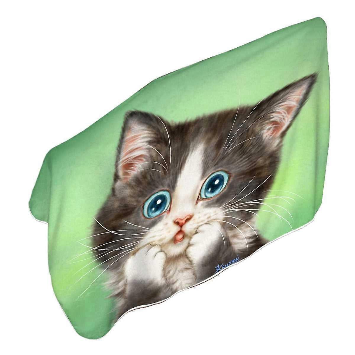 Baby Designs Lovely Sweet Kitten over Green Microfiber Beach Towel