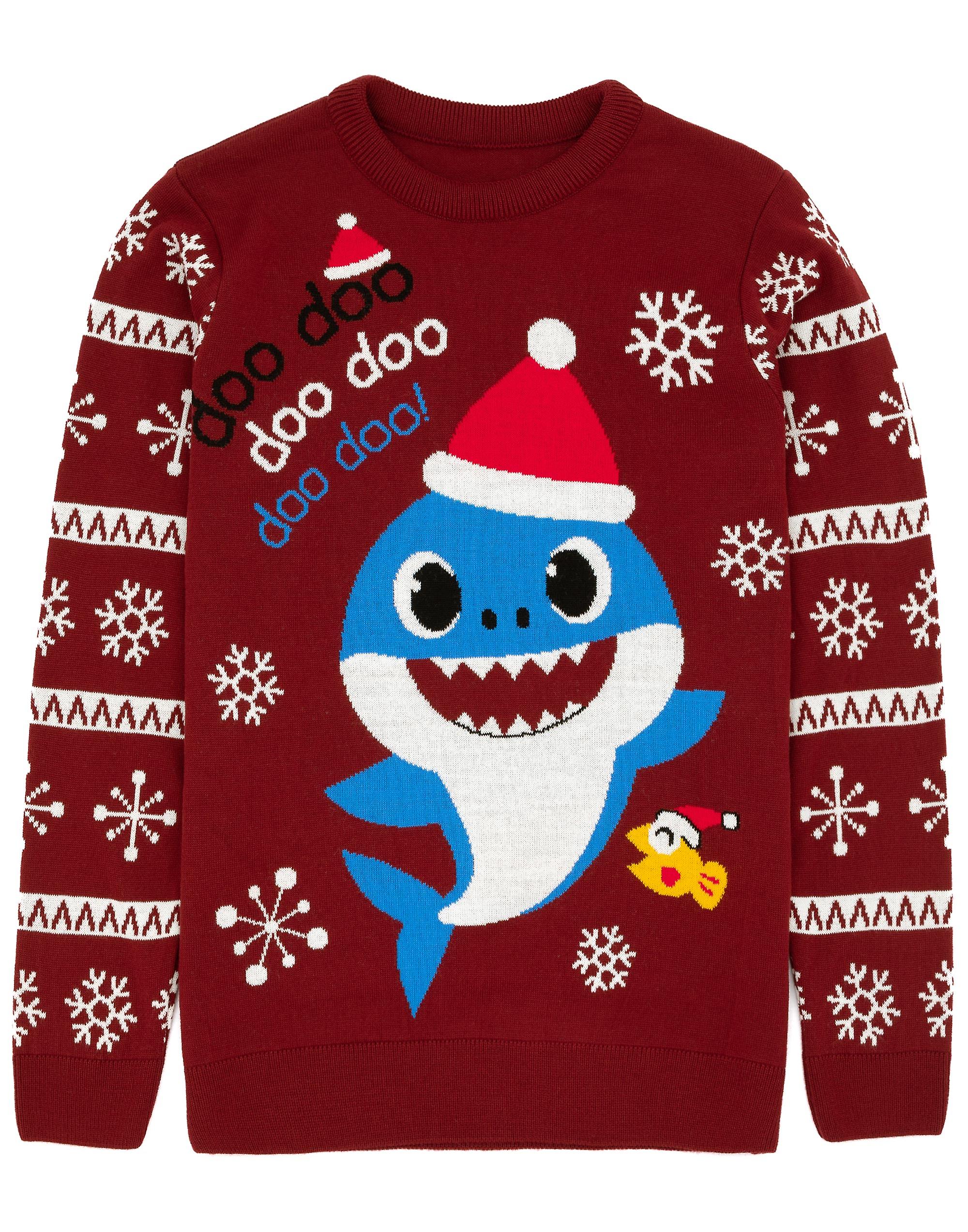 Baby Shark Mens Christmas Jumper Red Daddy Shark