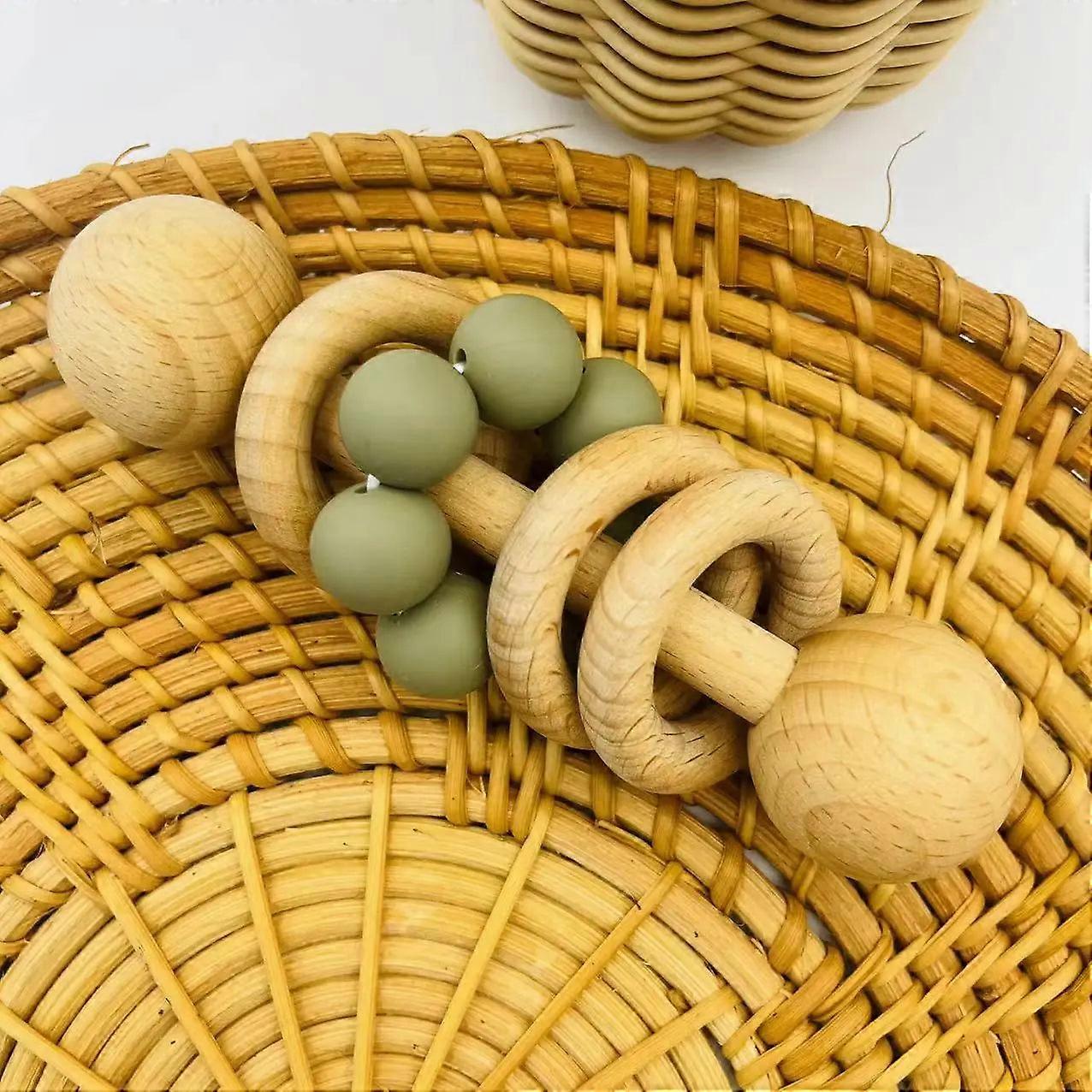 Baby Teething Rattle Toy With Wood & Silicone Beads - Shake & Play Infant