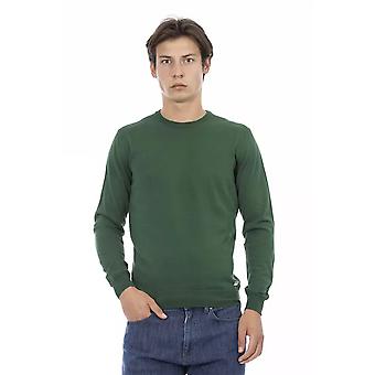 Baldinini Trend Men's Green Cotton Ribbed Crew Neck Sweater