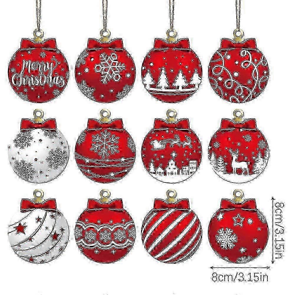 Ball Ornaments For Christmas Tree Christmas Tree Pendant With Christmas Elements 12X Red And White Christmas Ball Decorations