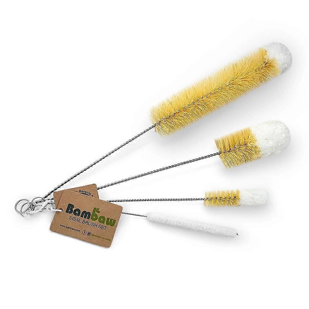 Maintain impeccable hygiene for your bottles and narrow containers with the Bambaw Bottle Brush Set, featuring four brushes in varying sizes to suit all your cleaning needs. Designed for versatility and durability, this set ensures thorough cleaning, even in the most hard-to-reach areas. Each brush features a sturdy yet flexible stainless steel handle that bends and unfolds effortlessly, allowing you to navigate curves and tight spaces with ease. The bristles are crafted from natural sisal, a sustainable fiber derived from the agave plant, making them both vegan and eco-friendly. The brush tips are finished with soft cotton, providing gentle yet effective cleaning without scratching delicate surfaces. Ideal for cleaning baby bottles, water bottles, thermoses, vases, and reusable containers, this set offers a comprehensive solution for maintaining cleanliness and extending the life of your household items. The natural materials ensure that the brushes are biodegradable and safe for both your family and the environment. Four brushes of different sizes for versatile cleaning applications Durable stainless steel handles combining strength with flexibility Eco-friendly sisal bristles sourced from the agave plant Soft cotton tips for gentle yet effective cleaning Perfect for bottles, thermoses, vases, and other narrow containers Reusable and biodegradable, supporting sustainable living Upgrade your cleaning routine with the Bambaw Bottle Brush Set and enjoy a more sustainable, effective way to keep your bottles spotless.