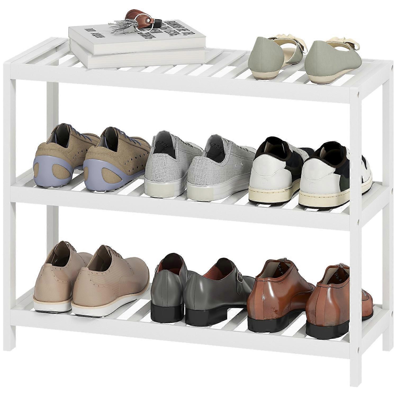 Skoställ i bambu, 3-vånings, vit finish, 70x26x55 cm