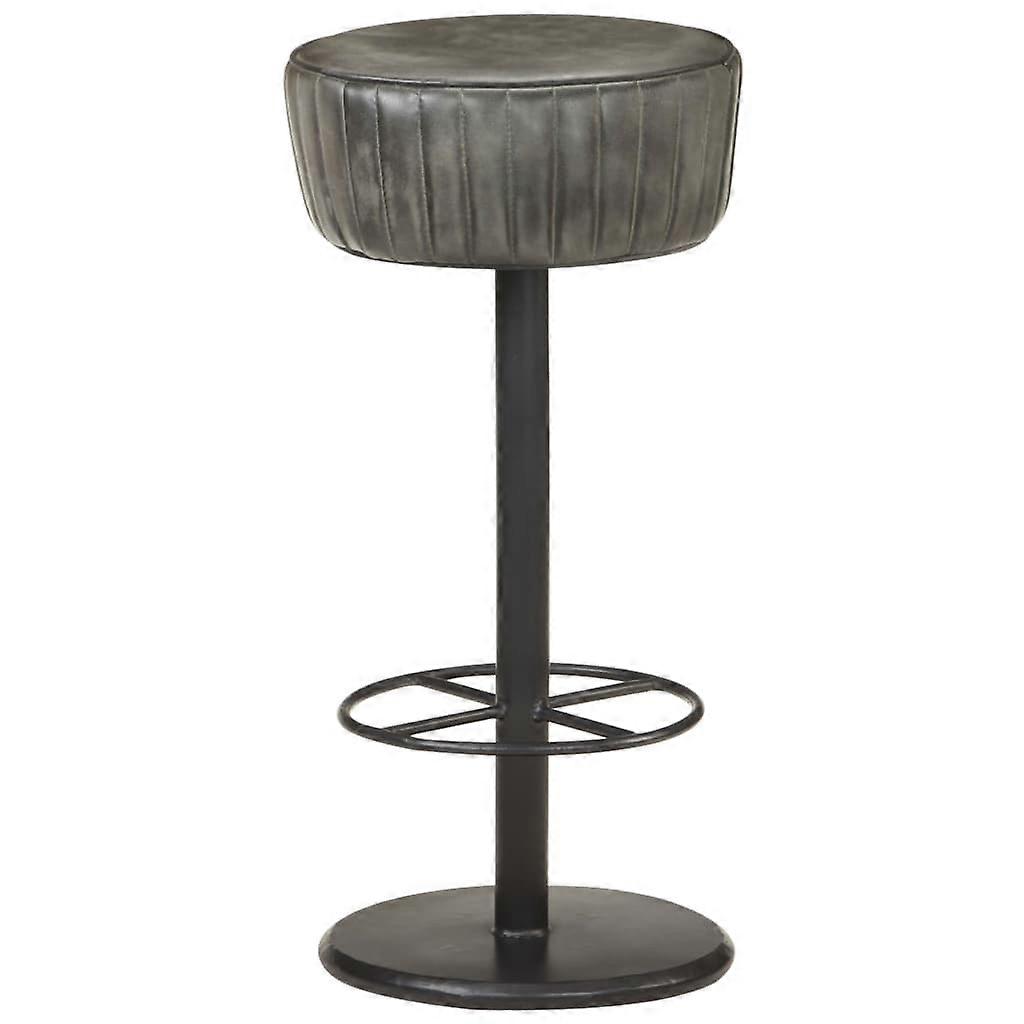Dieser schlichte, weiche und benutzerfreundliche Barhocker aus Echtleder ist einzigartig gestaltet. Es sieht in Restaurants, Bars, aber auch in Ihrem Wohnzimmer oder Esszimmer zu Hause großartig aus. Der Sitz aus Echtleder fühlt sich weich an und bietet zusammen mit der Fußstütze ein angenehmes Sitzgefühl. Der pulverbeschichtete Stahlrahmen trägt ebenfalls zu seiner Robustheit bei, so dass sich der Stuhl leicht in jede Umgebung einfügen lässt. Farbe: GrauMaterial: Echtleder mit grauem Finish, pulverbeschichteter StahlAbmessungen: 37 x 76 cm (Durchmesser x H)Zusammenbau erforderlich: Ja