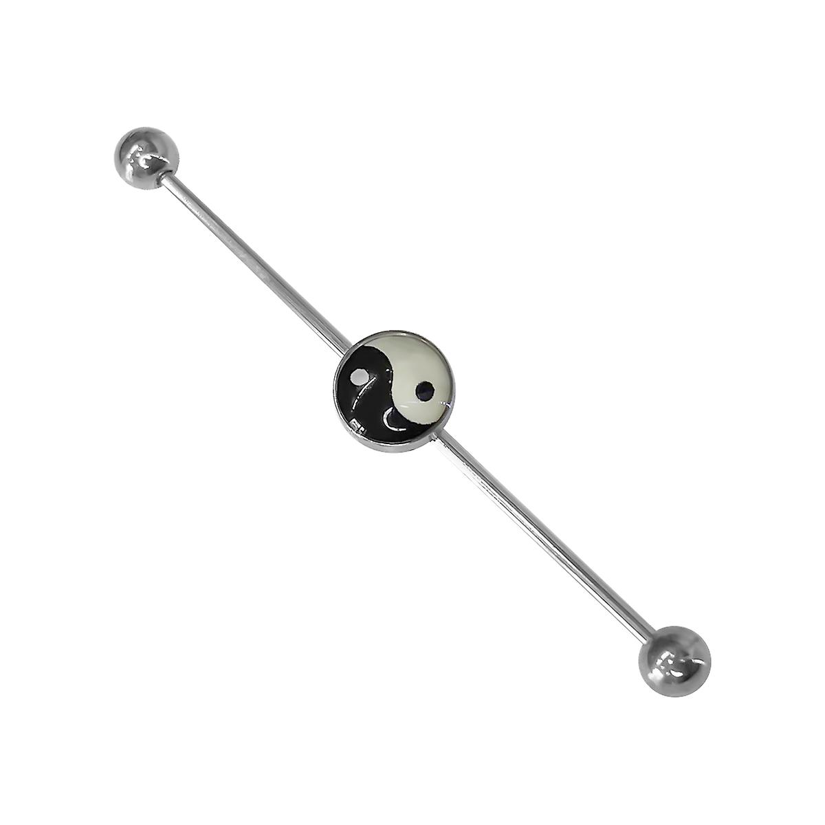 Barbell industrial ear jewelry surgical steel with ying yang logo design 16g