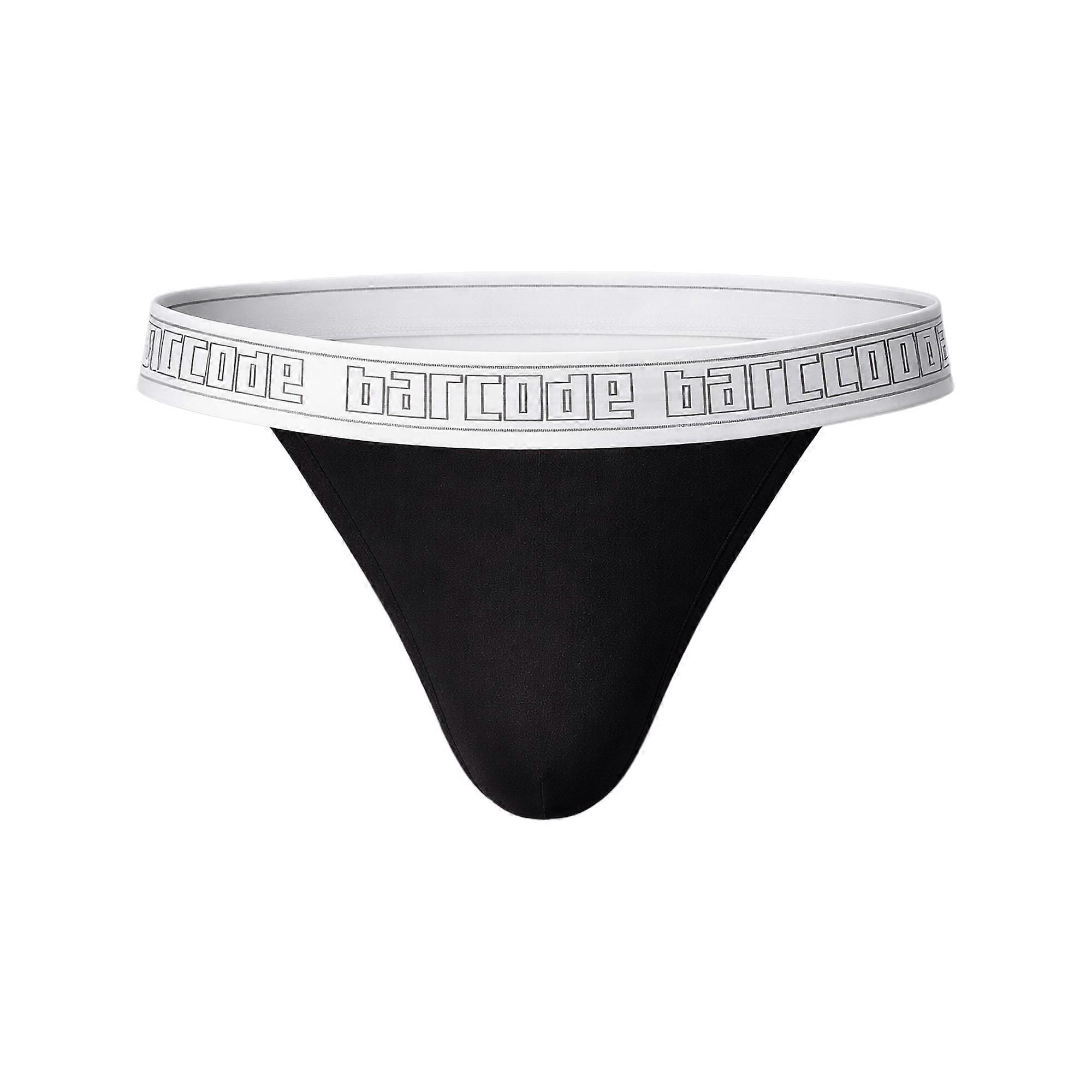 Met heren ondergoed van Barcode Berlin zit je altijd goed. Met combineert Barcode Berlin sportief ondergoed design met comfort. Dit is ondergoed waarmee je gezien wil worden Barcode Berlin Thong ASHLEY Black De Barcode Berlin Thong ASHLEY Black is een zwarte heren string van zachte modalstof met een zwart-witte logoband met Barcode-logo. De lage taille en smalle achterkant zorgen voor een strakke, minimalistische look, terwijl de anatomisch gevormde pouch ruimte geeft en alles goed op zijn plek houdt. Ideaal voor dagelijks gebruik, een avond uit of wanneer je met weinig stof toch veel effect wilt.