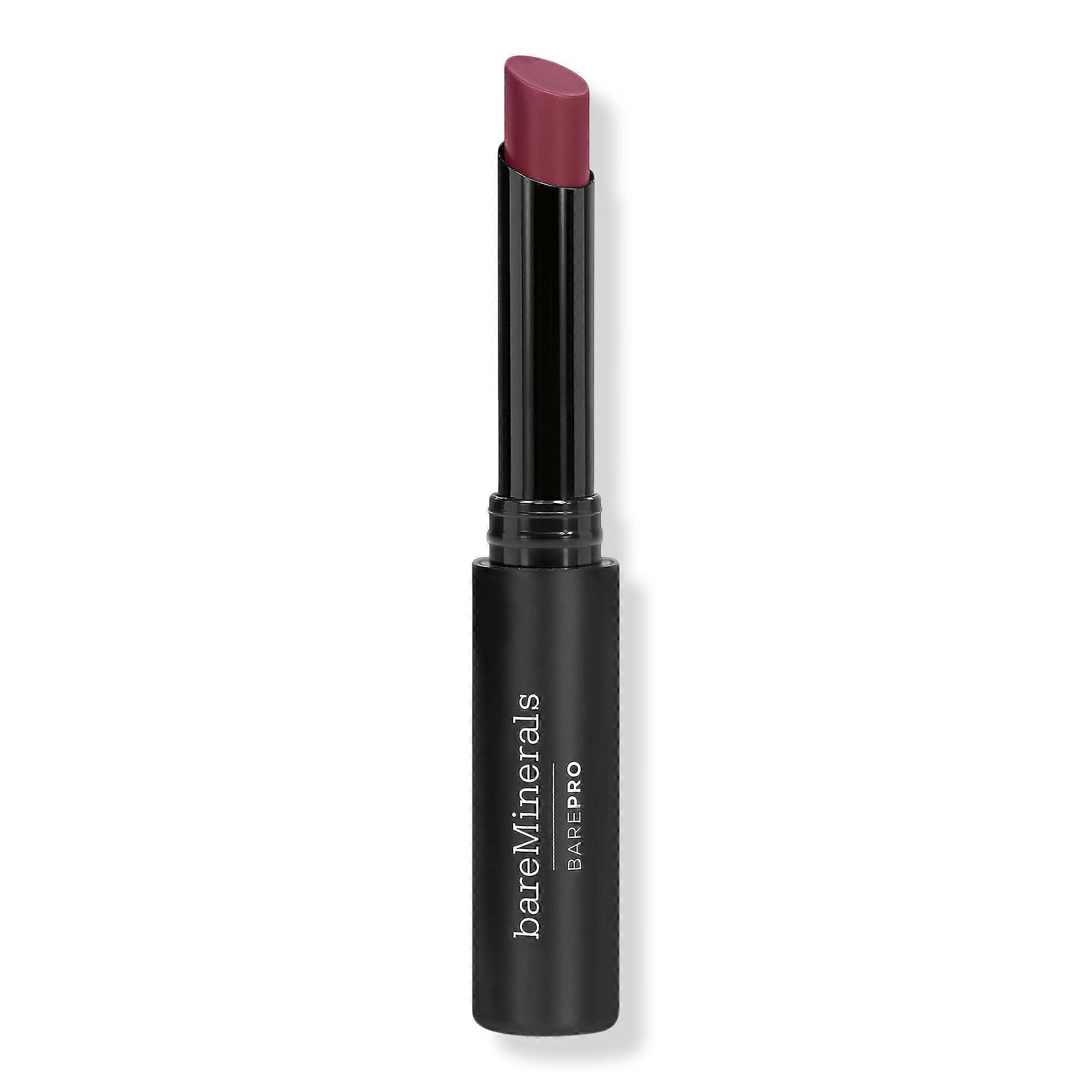 BareMinerals BAREPRO Longwear Lipstick provides full-coverage color in a single swipe. It features high-impact shades with a soft-matte, lightweight finish. This clean, vegan lipstick includes botanical oils and waxes to condition lips for comfortable, long wear.