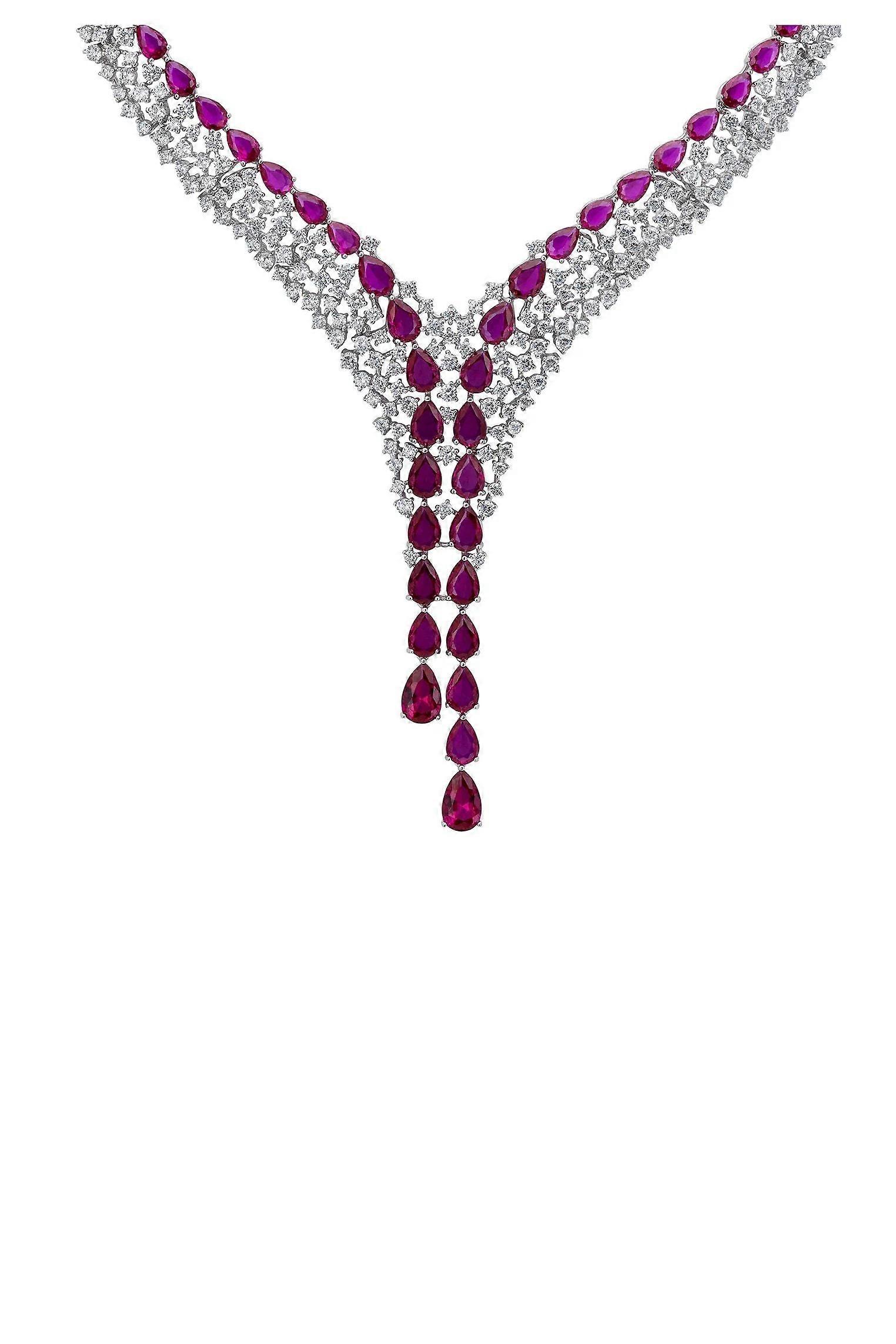 Baroness Statement Necklace Ruby Silver for Women, 925 Sterling Silver, Lab-Created Rubies, 44cm Length, 50g Weight