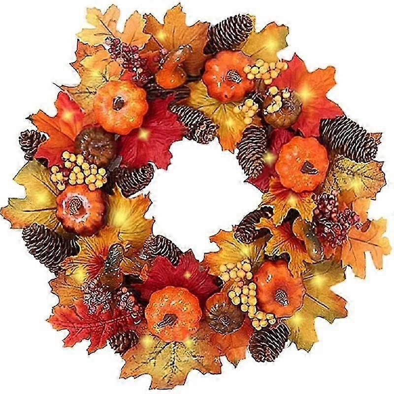 Barsinfi Autumn Wreaths with LED Light Fall Maple Leaf Pumpkin Berry Garland