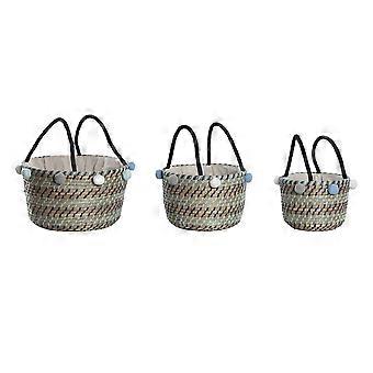 Basket set DKD Home Decor Pompoms 43 x 43 x 43 cm