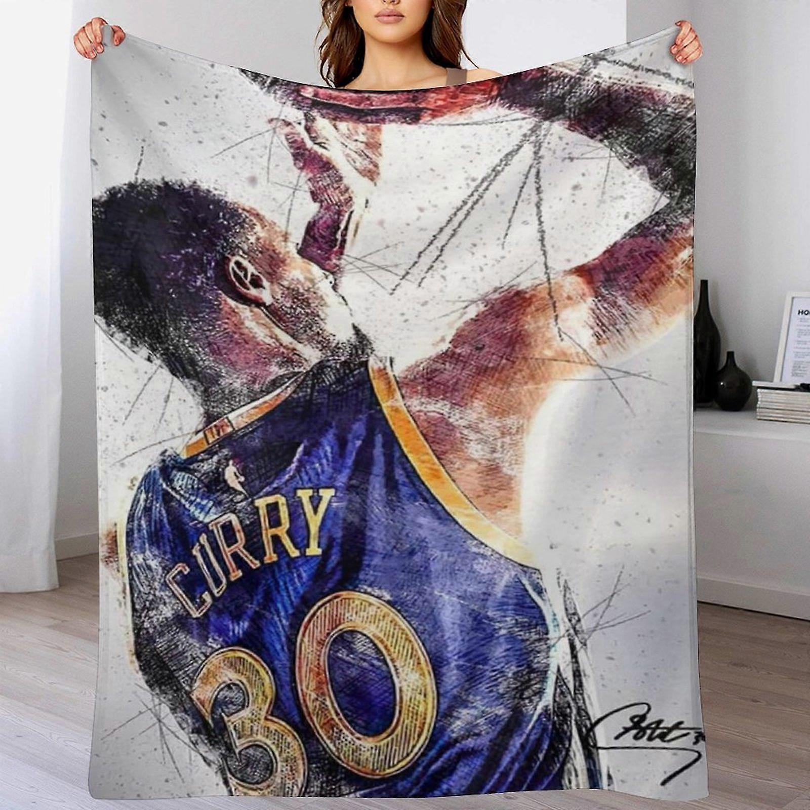 Basketball Player Action Illustration Graphic with “Curry 30” Style Jersey Print Fleece Blanket, Soft Warm Cozy Throw for Sofa Bed Bedroom Sports Home